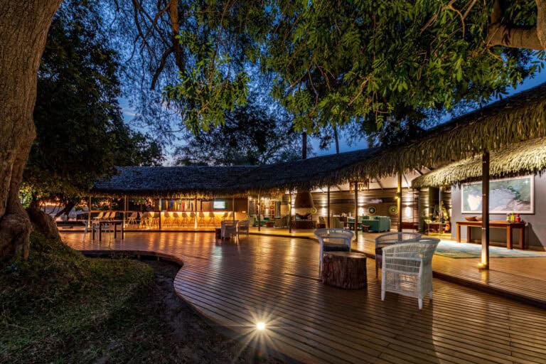 Breathtaking Chundu Island is only 21 km upstream from Zimbabwe’s legendary Victoria Falls. Eight spacious palm-thatched suites, each with their own private deck and perfect view of the Zambezi, are nestled beneath the magnificent riverine trees.
