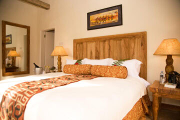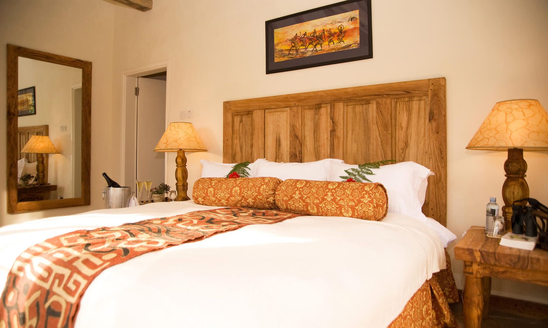 Stay in individual stone cottages with large private sitting rooms complete with fireplace, overstuffed armchairs, and art commissioned from some of Uganda’s best artists.