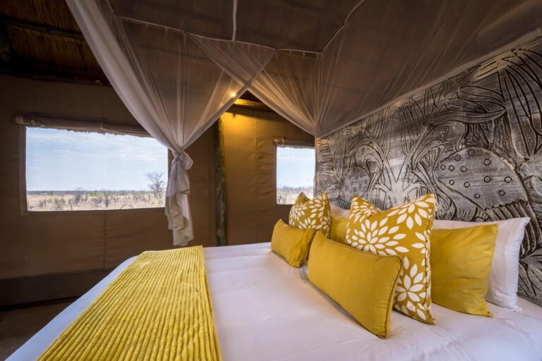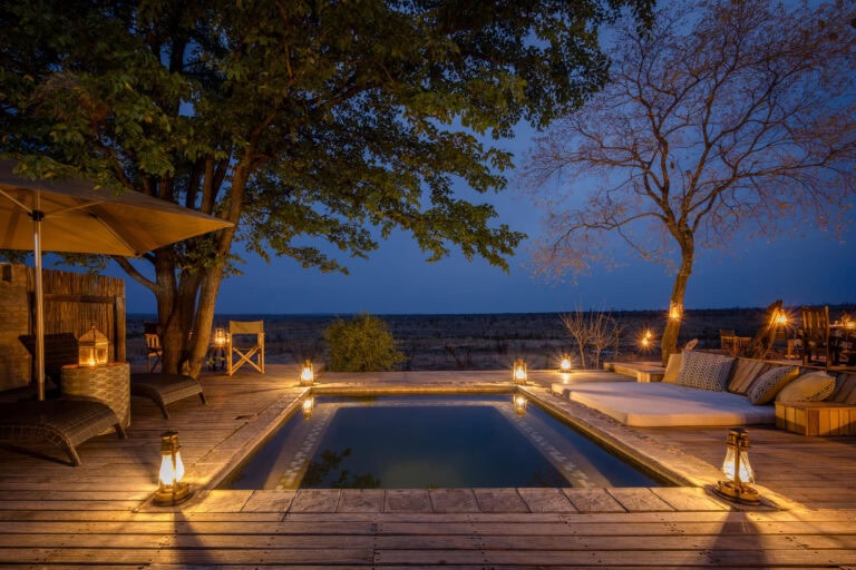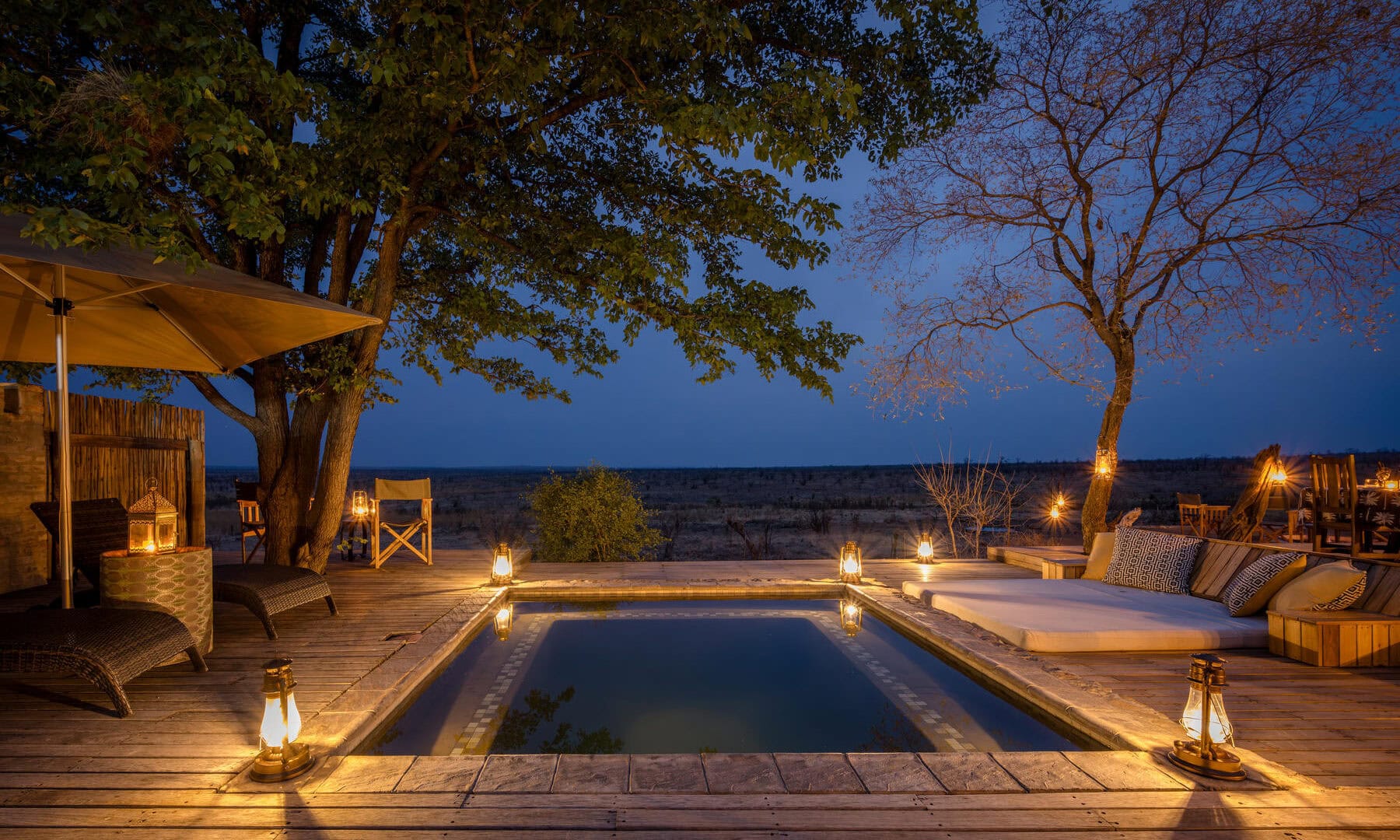 Perched on low foothills in the remote northwest corner of Hwange National Park, Zimbabwe, Daka Plains is an intimate safari camp that sits in isolation as one of the most remote camps in Hwange. The camp overlooks the Daka floodplains, where waterways are home to an abundance of wildlife. Daka Plains operates within its own private concession, ensuring an exclusive wilderness experience.