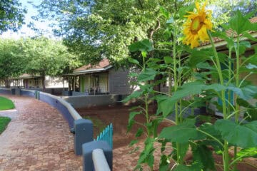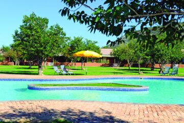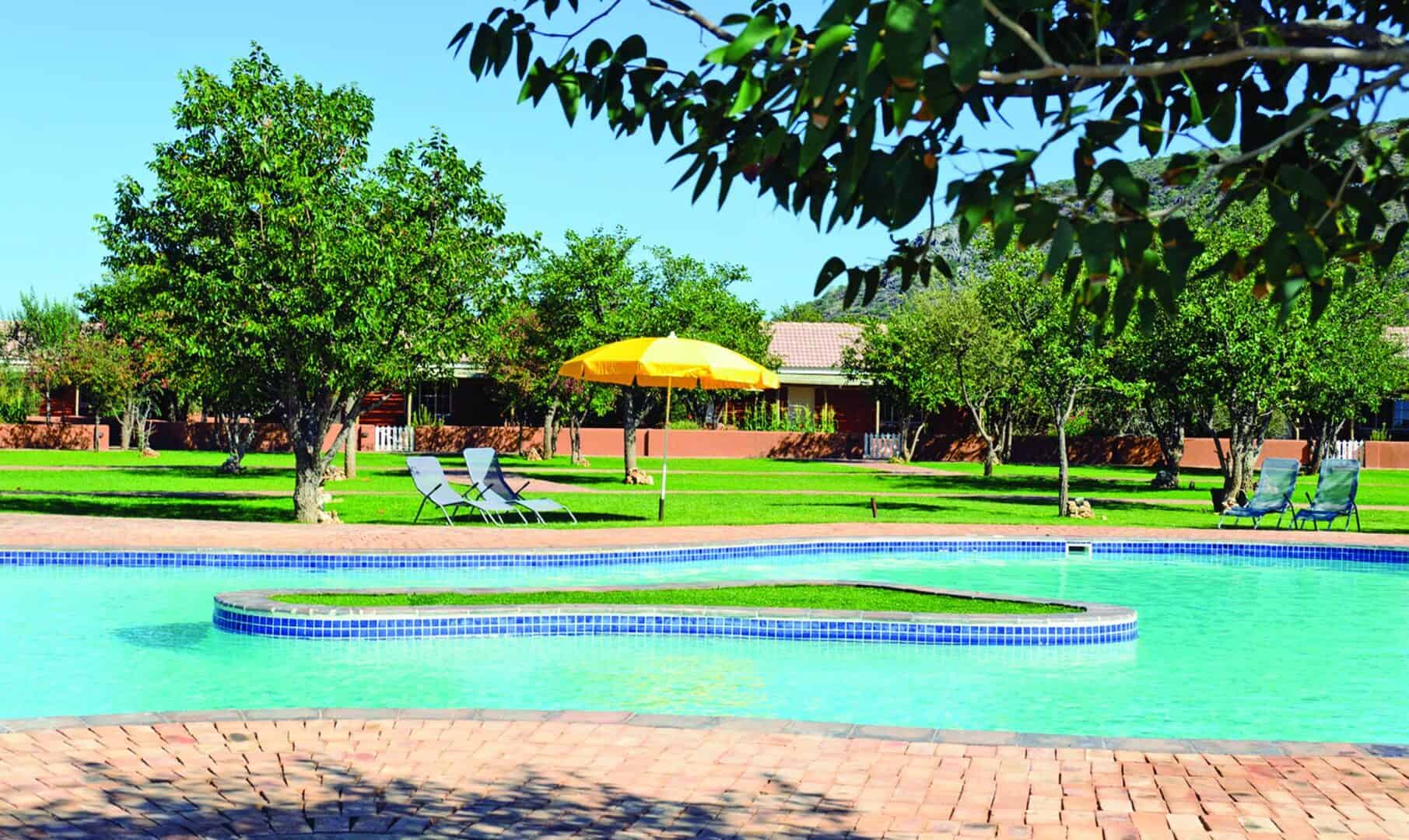 Savour the charm from your stoep where sunflowers peep over walls, refresh in the pool, visit the Twyfelfontein rock engravings 100km away and watch the sun sink into mopane woodland.