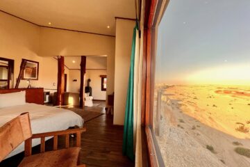 The ultimate desert experience is provided by Desert Breeze, which has a magnificent location above the fleeting Swakop River and looks out over a vast and seductive sea of apricot dunes.