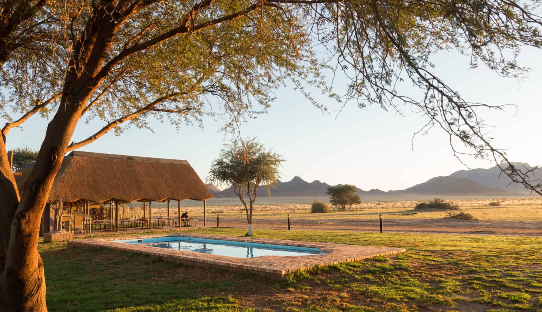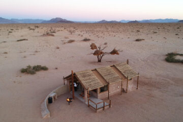 Desert Camp is situated just 5 km from the entrance gate to Sossusvlei and Sesriem Canyon in Namib Nauklauft Park. Nestled under centuries-old camel thorn trees, Desert Camp offers unsurpassed views over the Desert landscapes and surrounding mountains – An absolute must for the nature lover and photographer!