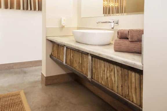 The 24 uniquely designed self-catering accommodation units have spacious bedrooms, en-suite bathrooms, shaded patio areas and private parking. Each twin-bedded bedroom features a fold-out sleeper couch to accommodate 2 small children (under 12) free of charge when sharing with 2 full paying adults. The patio is equipped with a barbeque facility, a fitted kitchenette with under counter fridge and 2 plate hob and a wooden bench for seating. Utility boxes with most utensils needed are available at reception and fresh food supplies can be ordered daily.