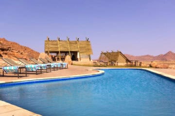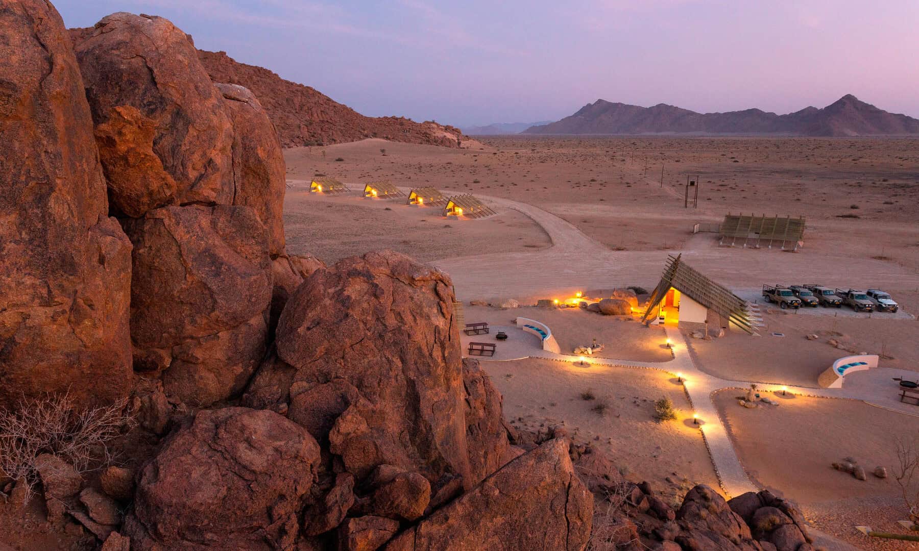 Desert Quiver Camp uniquely combines modern self-catering accommodation with comfort and style. Conveniently located a mere 5km from the entrance gate to Sossusvlei, the inspiring scenery characterised by granite outcrops, spectacular views and roaming wildlife will captivate your senses.