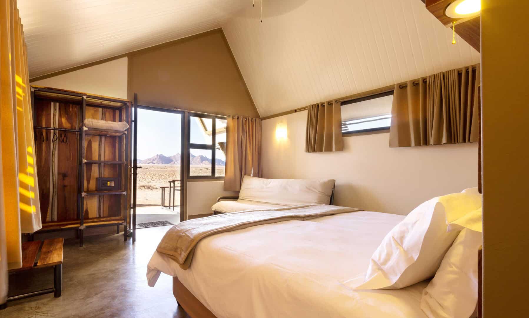 Meals can be enjoyed at the nearby Sossusvlei Lodge restaurant and their Adventure Centre offers a range of exciting desert activities to explore the area.