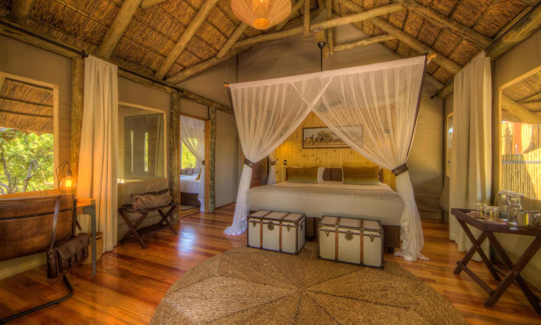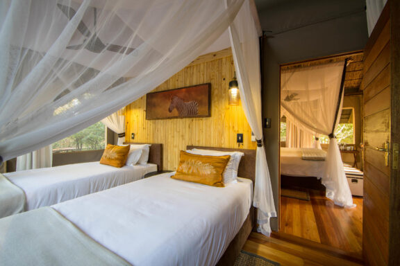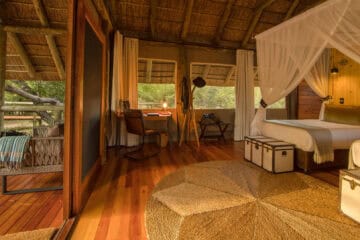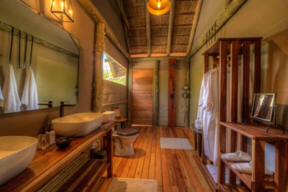 Dinaka’s tents are well-spaced and raised up on wooden decks, giving the perfect vantage point over a permanent water hole. Connected by wooden walkways, all areas of the camp are accessible by wheelchair, the camp is also child friendly.