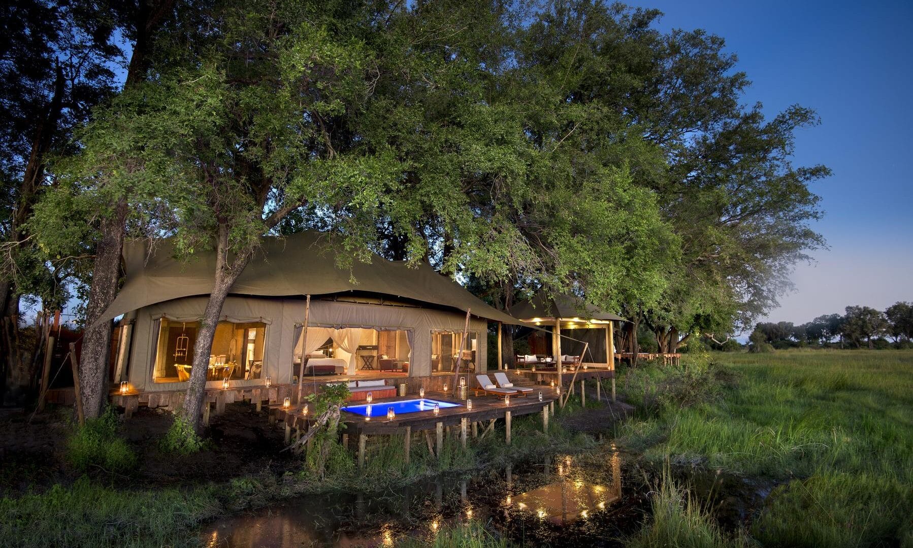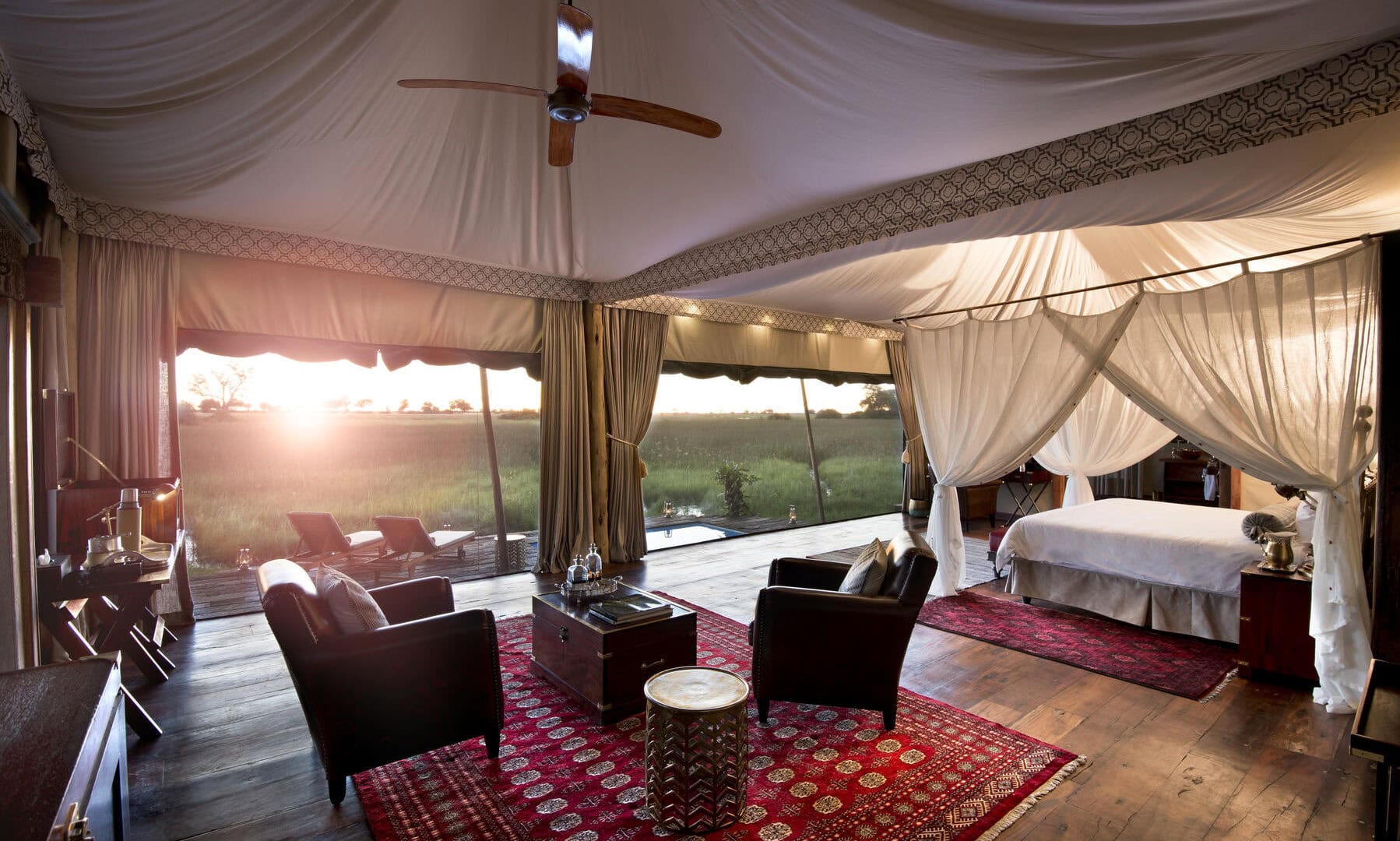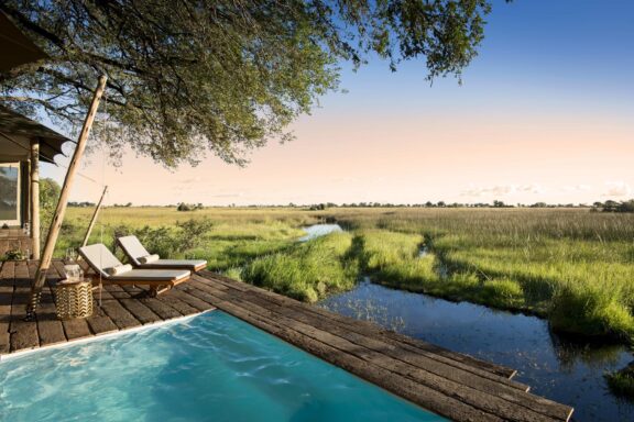 The renowned Duba Plains Camp sits in the heart of the Okavango Delta on a 33,000-hectare private concession that typifies the region’s unique landscape.