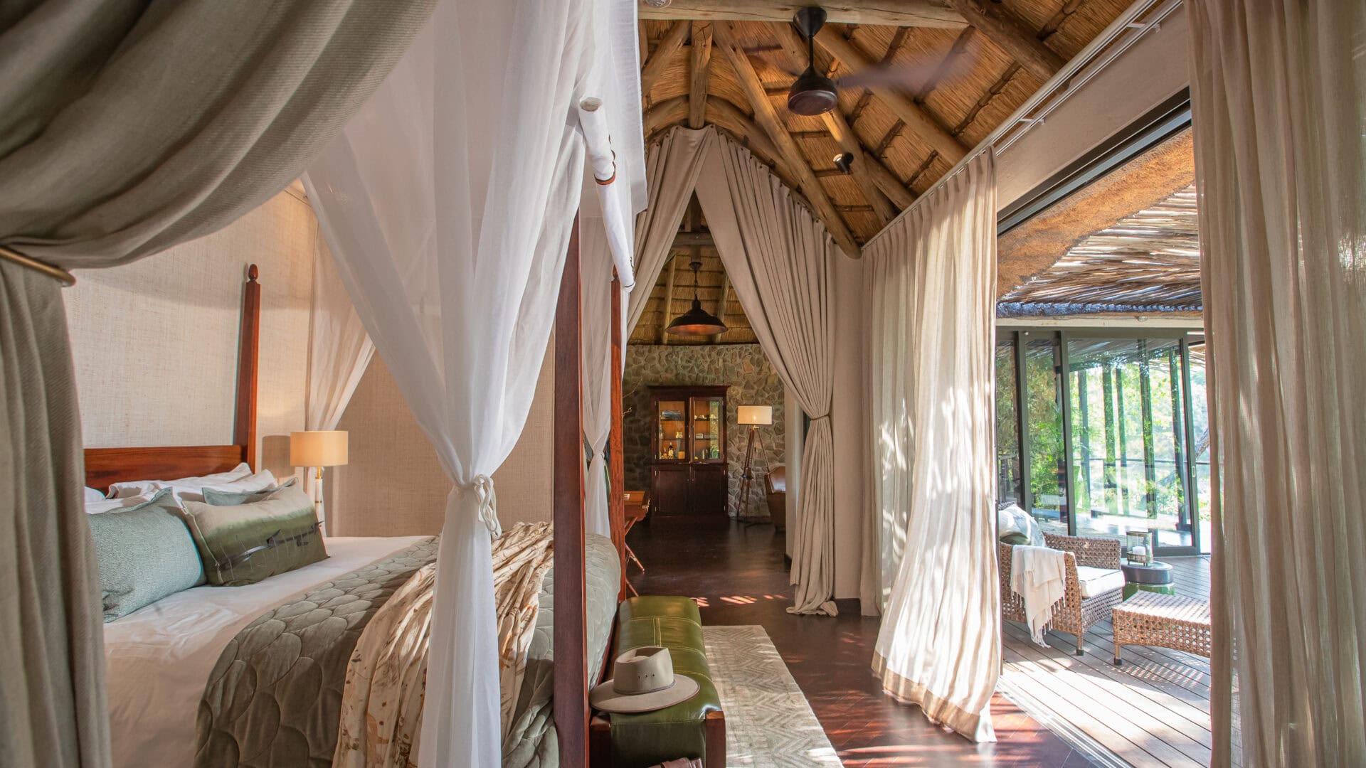 The timeless décor creates a serene atmosphere that celebrates the quintessential spirit of African safaris— embracing the adventure, discovery, and the romance of safari tradition while remaining completely at peace with its riverine setting.
