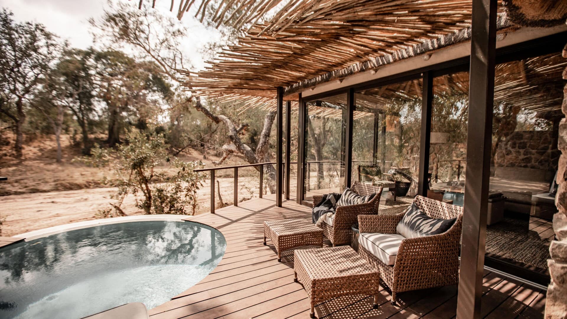 Each of its six suites features floor-to-ceiling windows that flood the space with natural light and bushveld views, allowing you to experience the remarkable Big Five wilderness right on your doorstep.