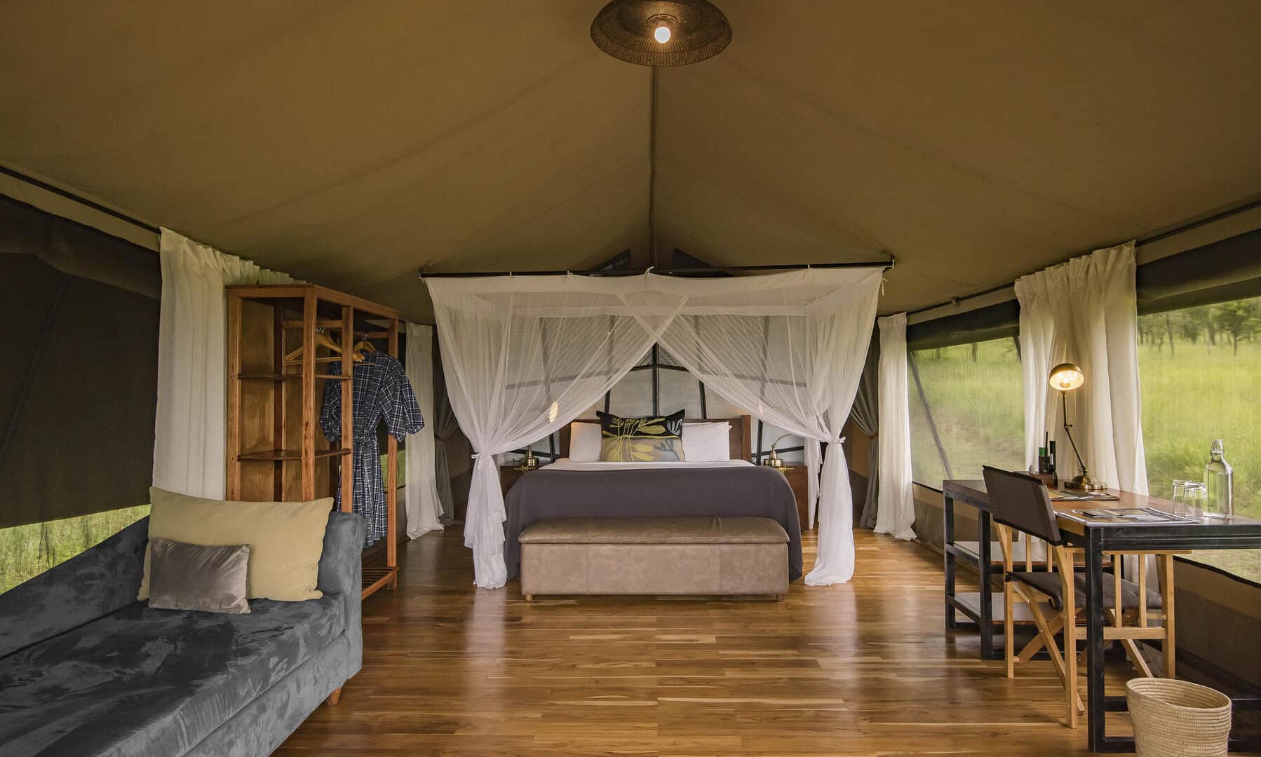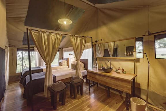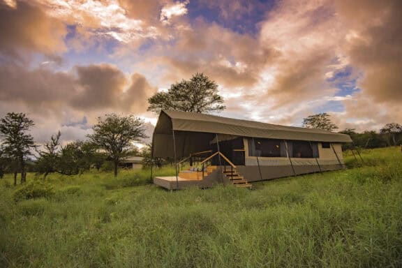 Dunia Camp was a pioneer in mentoring women in the safari industry. The camp is mainly run by a team of women only. It is an intimate camp with just eight spacious tented suites, each with expansive views of the pristine wilderness and game-filled plains from a large private veranda.