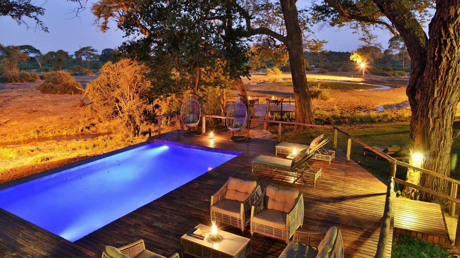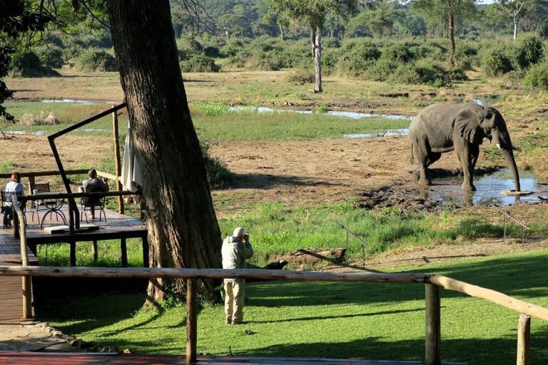 From the comfort and tranquillity of the lodge, you can watch creatures great and small dropping by for a thirst-quenching drink at the lodge’s waterhole, which attracts a wide variety of game, particularly elephant, but also giraffe, buffalo, and antelope.