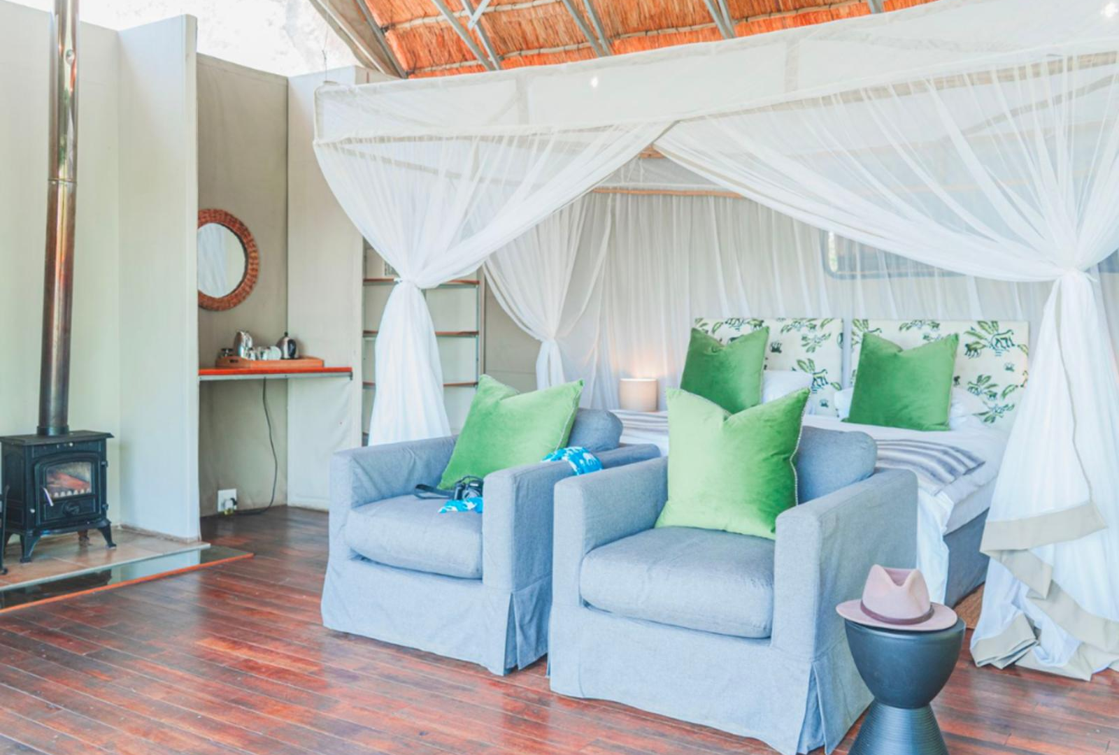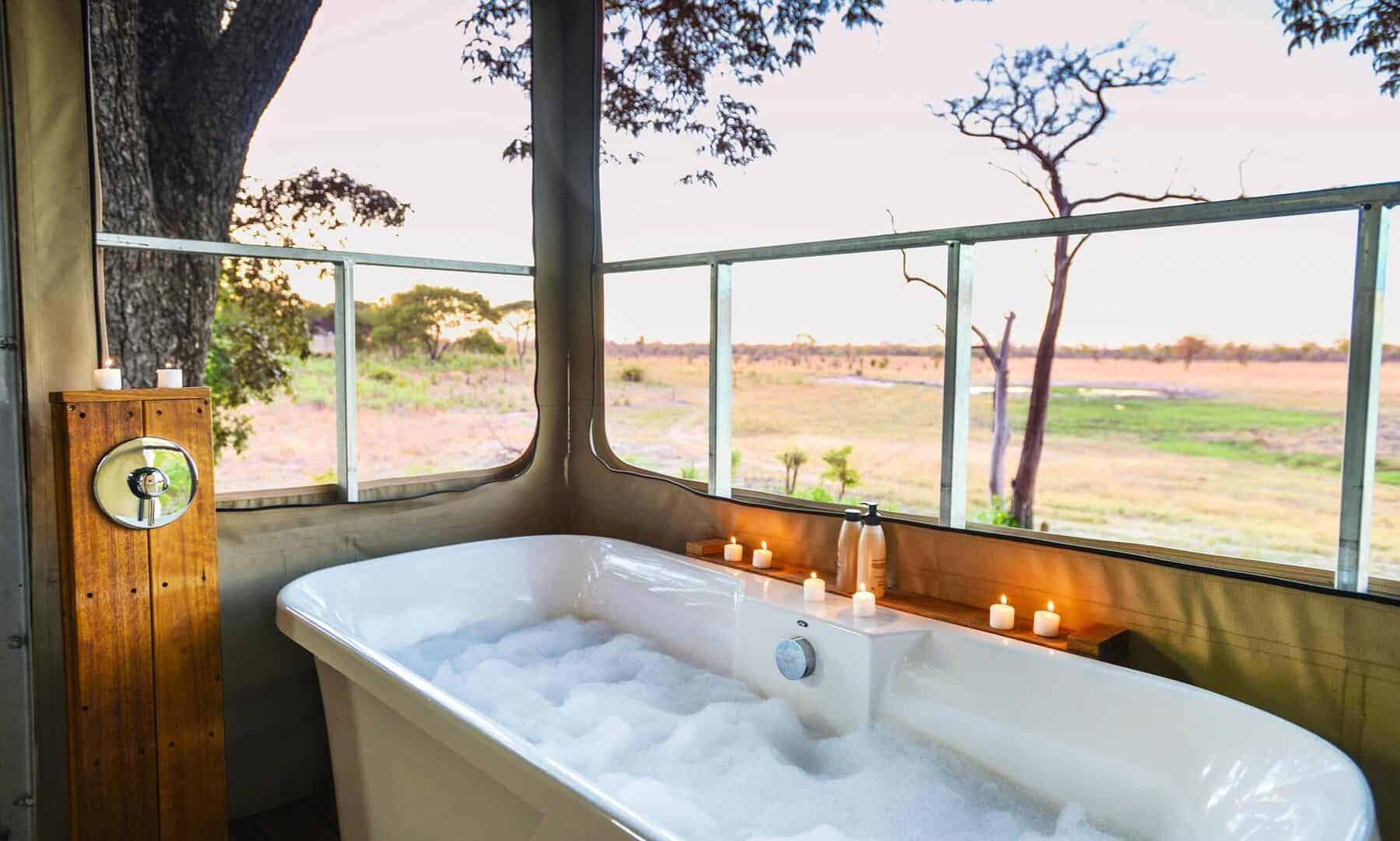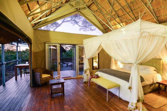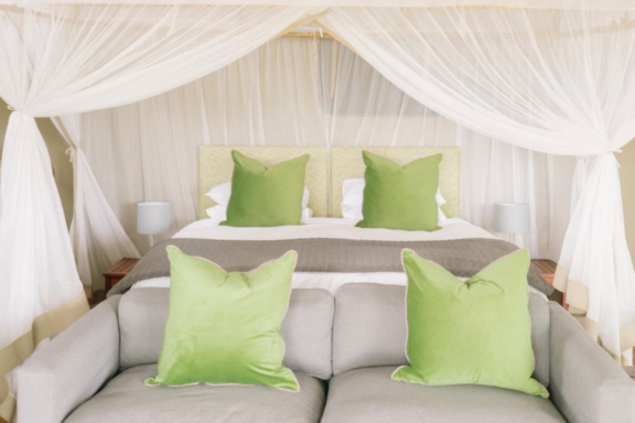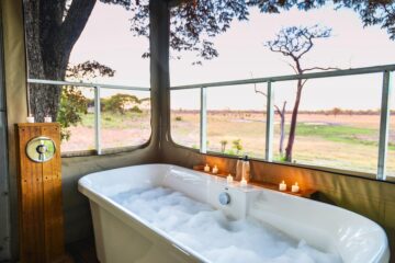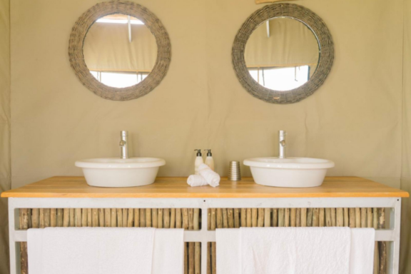 The camp comprises of 8 tented chalets. Every chalet has a double or twin beds surrounded by mosquito netting, an en-suite bathroom with a bath and basin, a glam outside shower and wrap-around veranda.