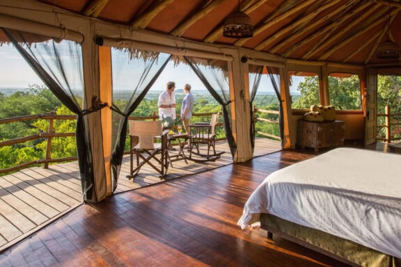 The elevated “treehouse” suites are perched high up with views over the adjacent baobab and marula trees, giving Elewana Tarangire Treetops an adventurous and exotic feel.
