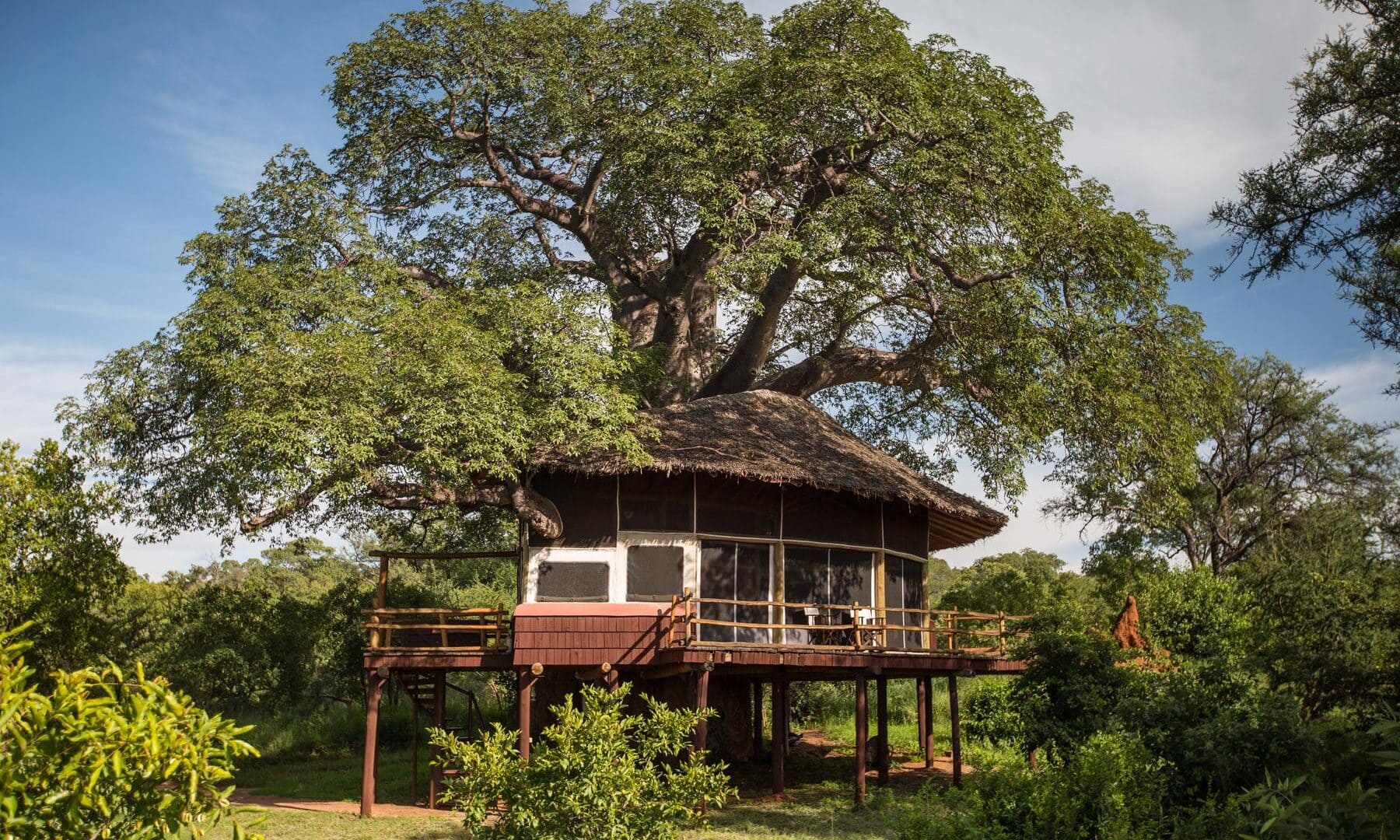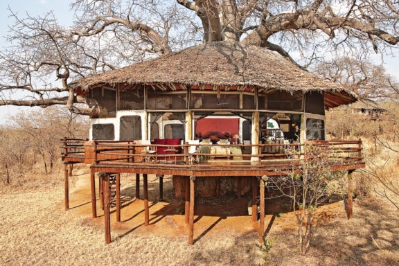 Elewana Tarangire Treetops sits in a 31,200-hectare community wildlife area bordering Tarangire National Park amid a landscape of rolling and baobab-studded hills.