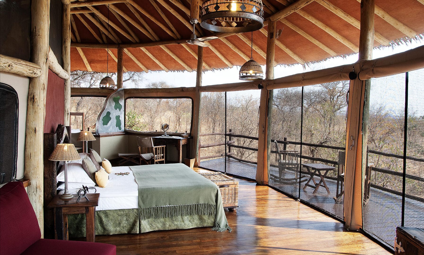 Twenty suites, each 65 sq meters with a private balcony, are lavishly furnished. Natural materials are blended with contemporary African décor to provide you with a unique and memorable safari experience.