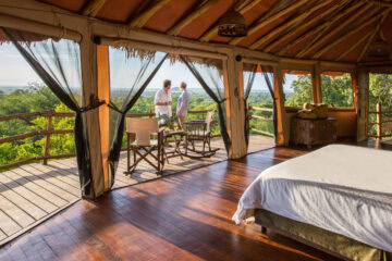 The elevated “treehouse” suites are perched high up with views over the adjacent baobab and marula trees, giving Elewana Tarangire Treetops an adventurous and exotic feel.