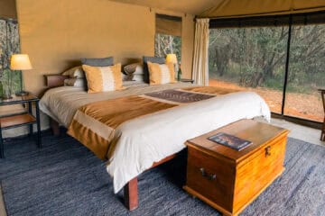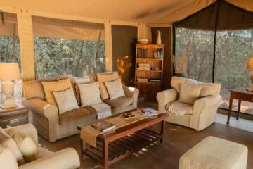 Between game drives, you can relax in the shaded lounge or explore the area with a game drive, ending at the camp for a hot shower in their en-suite bathrooms. Evenings are often spent around the firepit, sharing stories under wide East African skies.