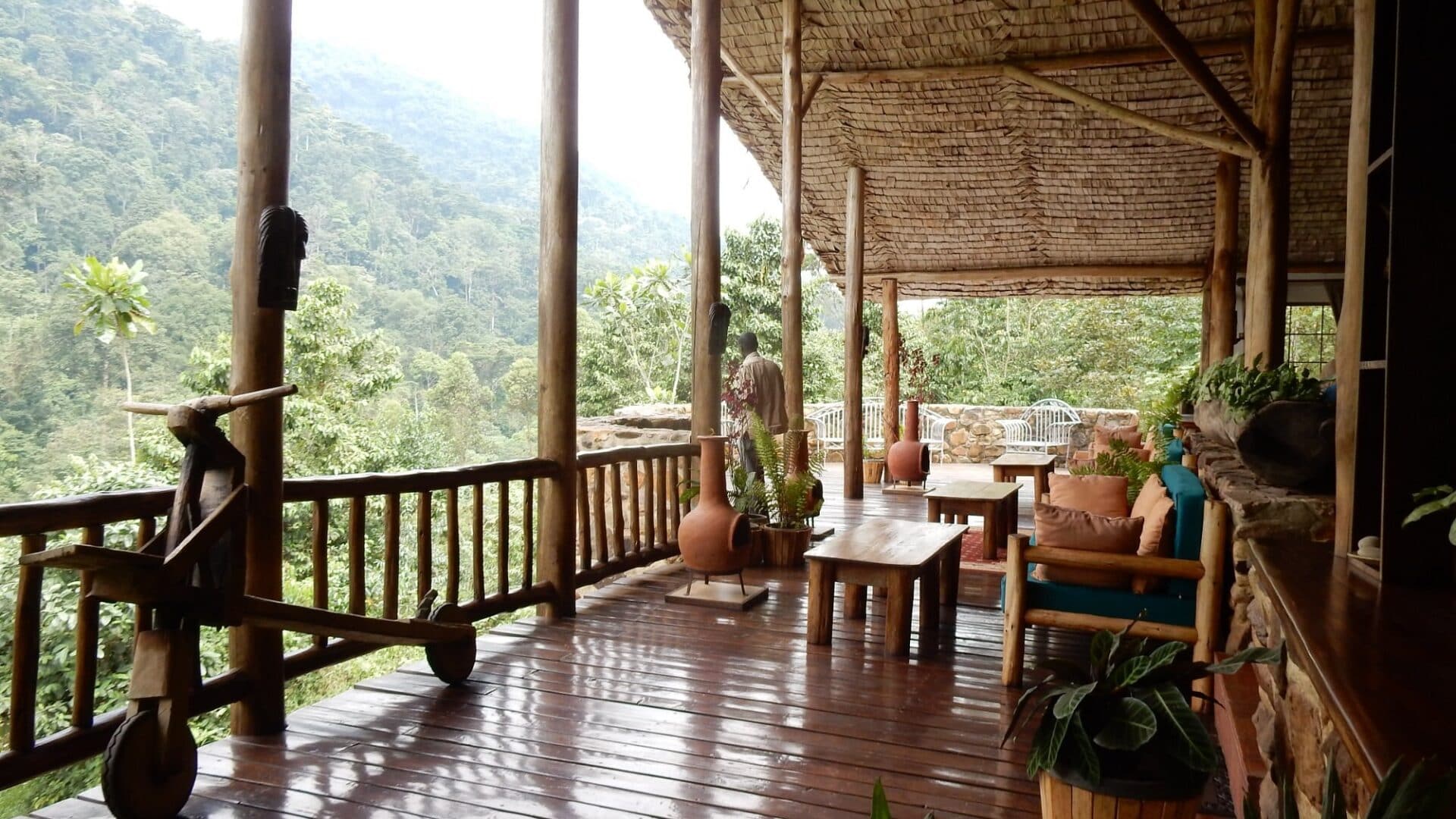 The lodge is situated on a large tract of land contiguous with the Bwindi Impenetrable Forest National Park.