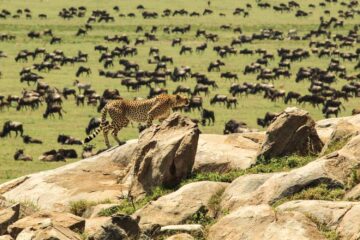 This intimate traveling camp enables you to experience being a part of this 600-kilometre journey as the Wildebeest, Zebra and their Antelope companions walk their time-honored grazing routes from the Southern plains to the North for the Mara River crossing.