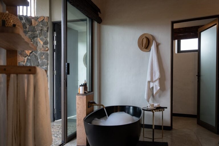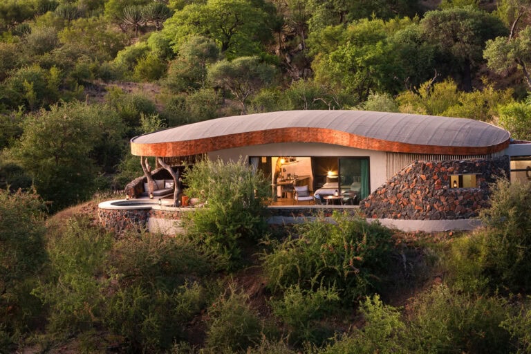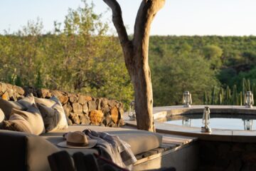 Each of the eight private villas at the camp is a testament to luxury and seclusion, featuring heated plunge pools with scenic views of the ravine. The villas draw inspiration from the Mopane tree, a vital resource for the local wildlife, and are designed to blend seamlessly with the natural environment.