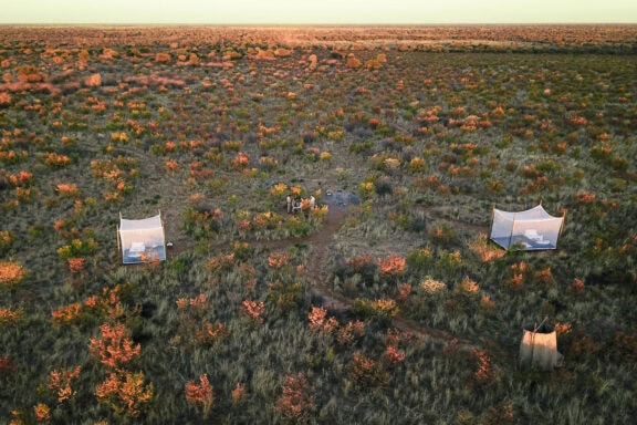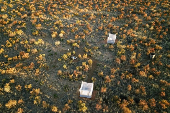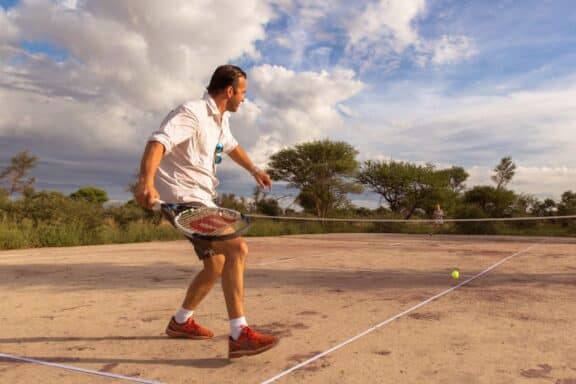 Feline Fields Lodge is located in a very remote area, within the northern reaches of the Kalahari, to the west of the Okavango Delta, not far from the border with Namibia. Completely off-grid, using state-of-the-art solar technology, it’s a retreat in every sense of the word, offering a range of activities from desert biking, game drives and horse riding to guided walks, and even a tennis court !