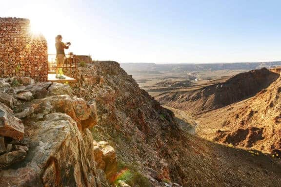 Fish River Lodge in southern Namibia is the only lodge perched directly on the rim of the Fish River Canyon offering guests breathtaking views of the canyon from sunrise to sunset.
