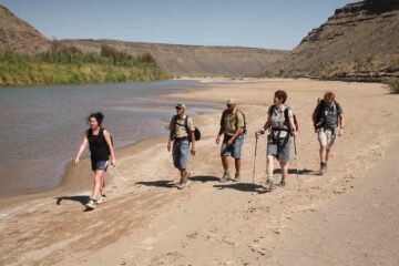 Incredible hiking trails meander down into the heart of the canyon affording guests spectacular scenery combined with 75 km river frontage made up of permanent water holes and rock pools that attract Hartmans zebra, kudu, oryx, springbok and many other smaller wildlife species and endemic bird life.