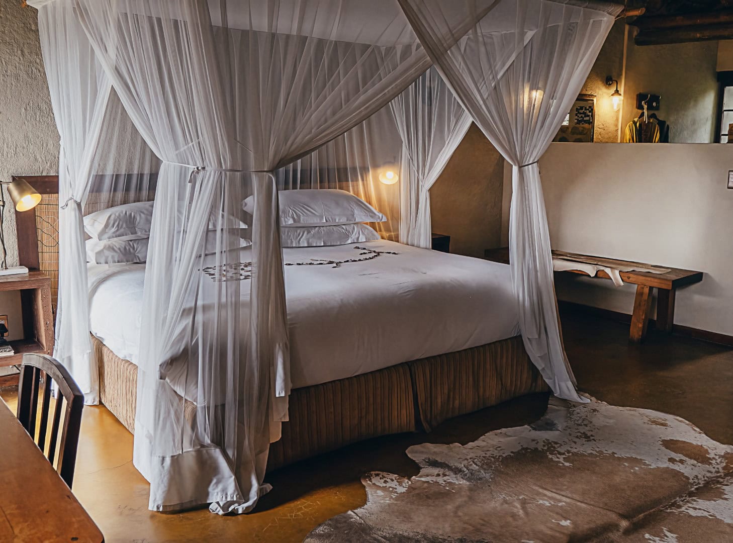 Geiger’s Camp was originally a traditional family house and thus maintains a homely atmosphere, beyond its luxuriousness. Walls are decorated with stunning artworks, painted by owner, Marion Geiger-Orengo, bringing the splendour of the outdoors inside.
