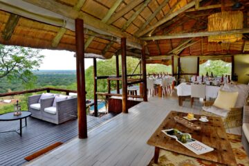 The thatched main area features an open dining area, bar, and various small lounges overlooking an active waterhole. Unwind in the refreshing pool, stay fit in the gym, or indulge in spa treatments that cater to the mind, body, and soul. The lodge offers 11 luxurious tented rooms, including 9 twin/super king rooms and 2 family rooms, each with private viewing decks, en-suite bathrooms, and superbly appointed furniture and fittings.