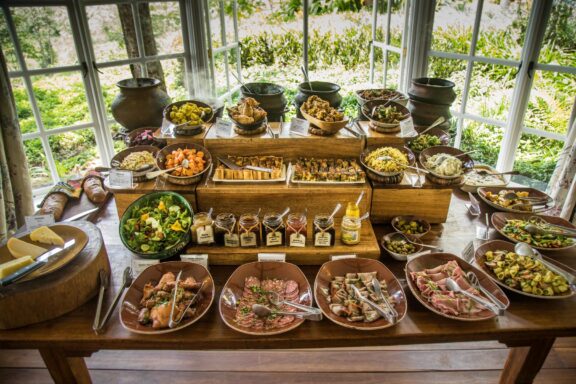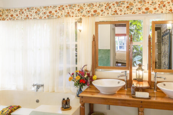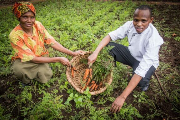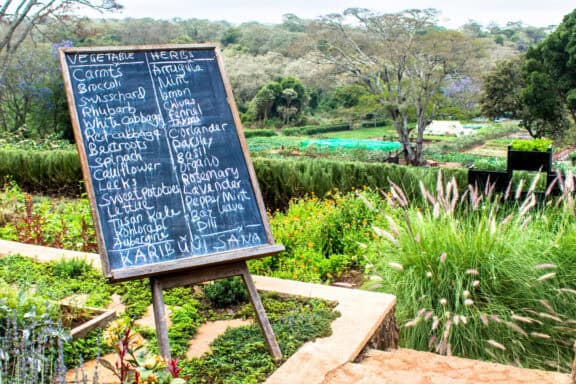 Inside, beautiful architectural details, such as the farmhouse’s original wooden beams, and colourful artwork reflecting the inspirations of local African artists greet you. Outside, the farm’s organic vegetable and terraced flower gardens provide a wonderful sanctuary for afternoon tea or a quiet walk to impart a sense of contentment and well-being.