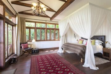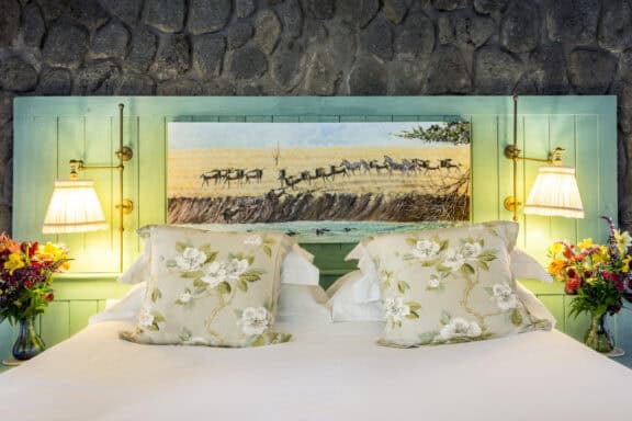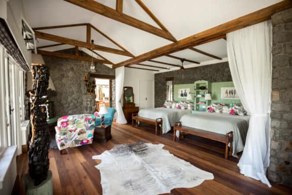 Established as a coffee farm in the late 1920s and refurbished as a warm, rustic luxury inn, Gibb’s Farm is a welcome retreat for a few days’ respite while on safari or for an extended vacation or honeymoon getaway. The main farmhouse and 17 cottages offer the warmth and charm of another era, with all of the modern amenities you could ask for.