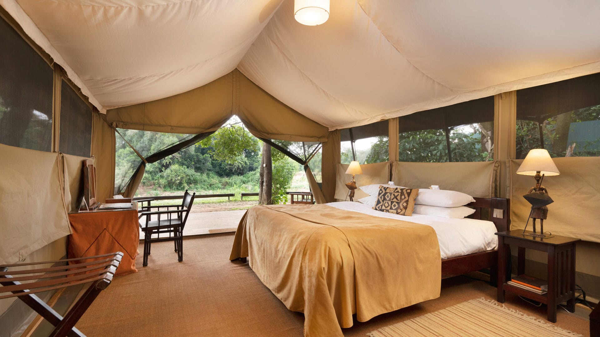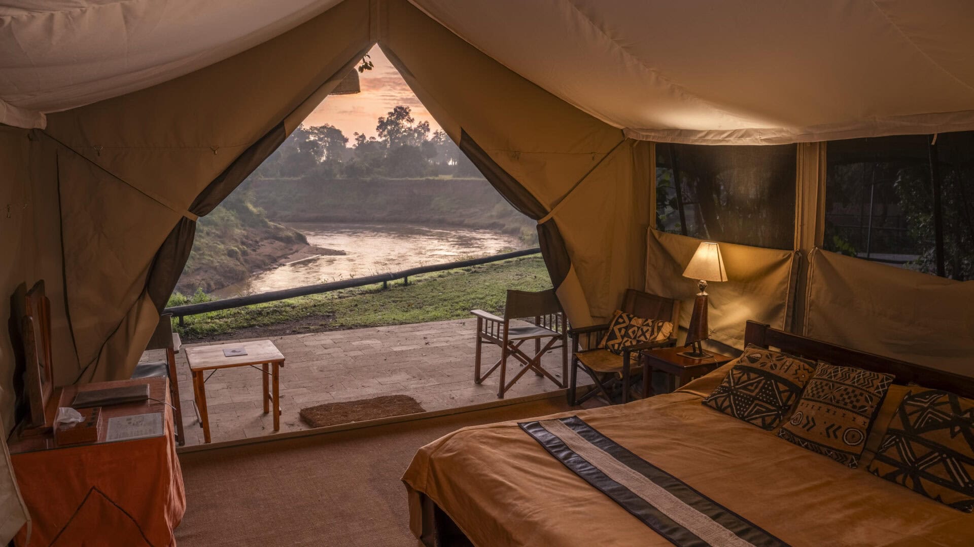 Located in Kenya’s Masai Mara National Reserve, Governors’ Camp occupies a prime position along the banks of the Mara River. This classic safari camp offers an authentic under-canvas experience, with comfortable tents strategically positioned to capture views across the open plains teeming with wildlife.