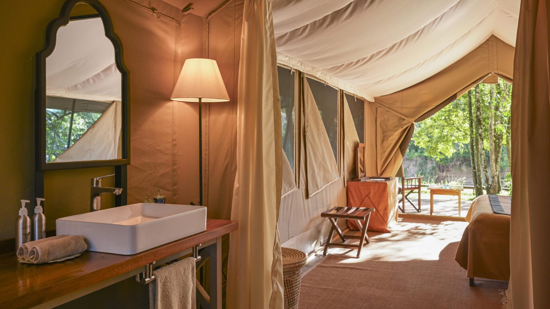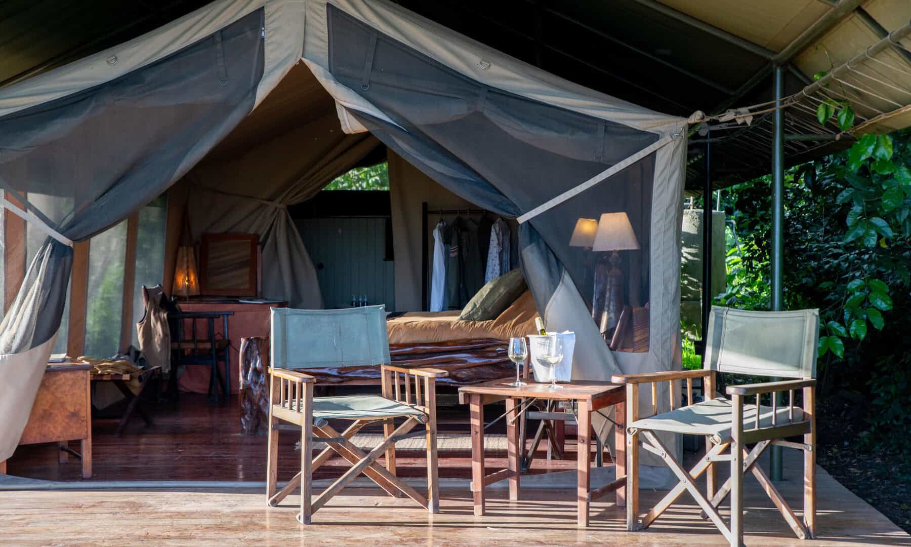 Each tent features an en-suite bathroom and private veranda, providing a personal sanctuary after game drives. The spa tent offers a range of massages using 100% natural products by The Wild Herb Company.