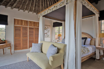 Situated in the northern Laikipia plateau of Kenya, Governors’ Mugie sits within a 50,000-acre private wildlife conservancy, serving as a vital corridor for endemic wildlife. This intimate lodge features crafted stone cottages perched on a hillside, each offering panoramic views of the Laikipia landscape.