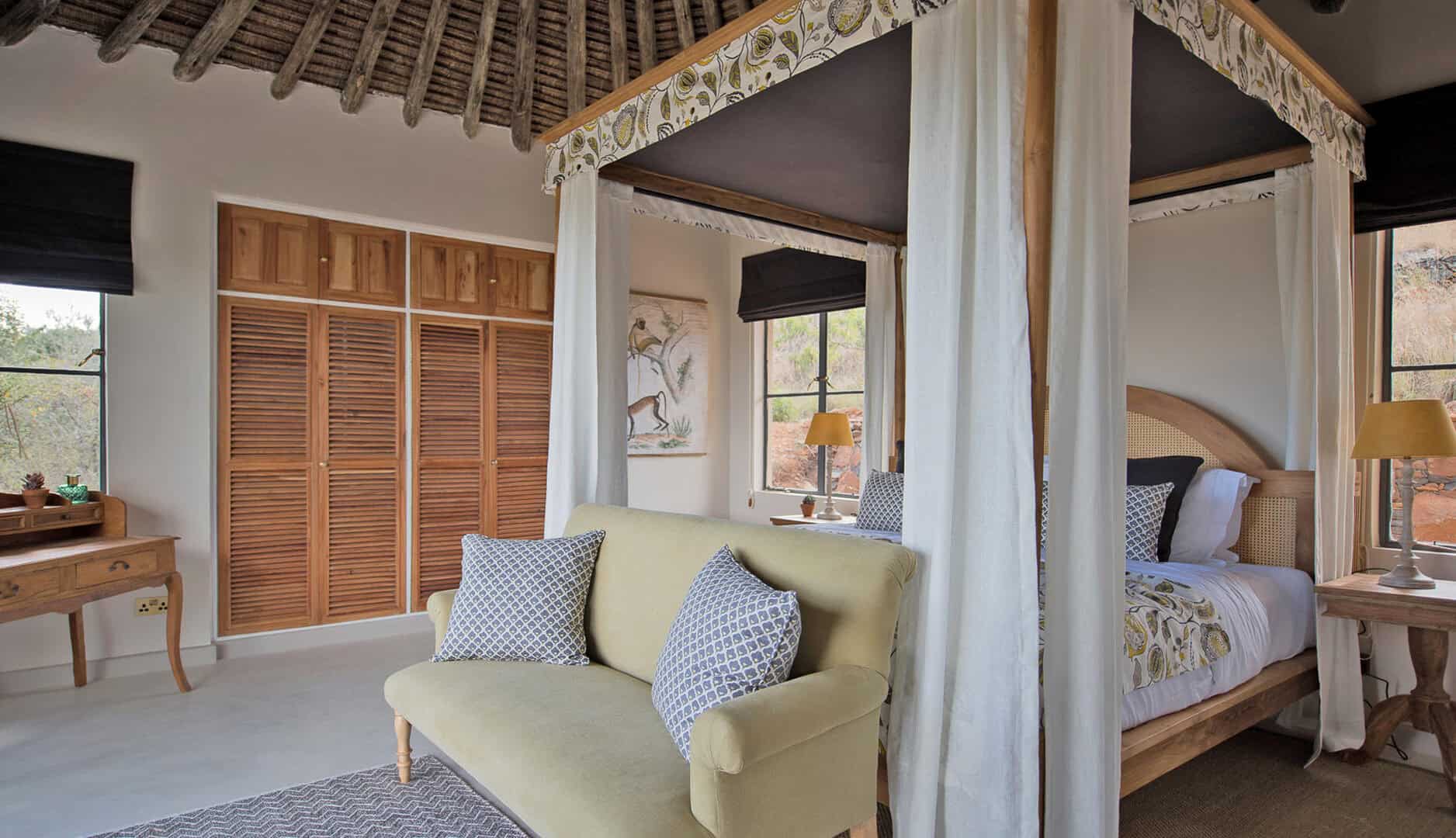 Situated in the northern Laikipia plateau of Kenya, Governors’ Mugie sits within a 50,000-acre private wildlife conservancy, serving as a vital corridor for endemic wildlife. This intimate lodge features crafted stone cottages perched on a hillside, each offering panoramic views of the Laikipia landscape.