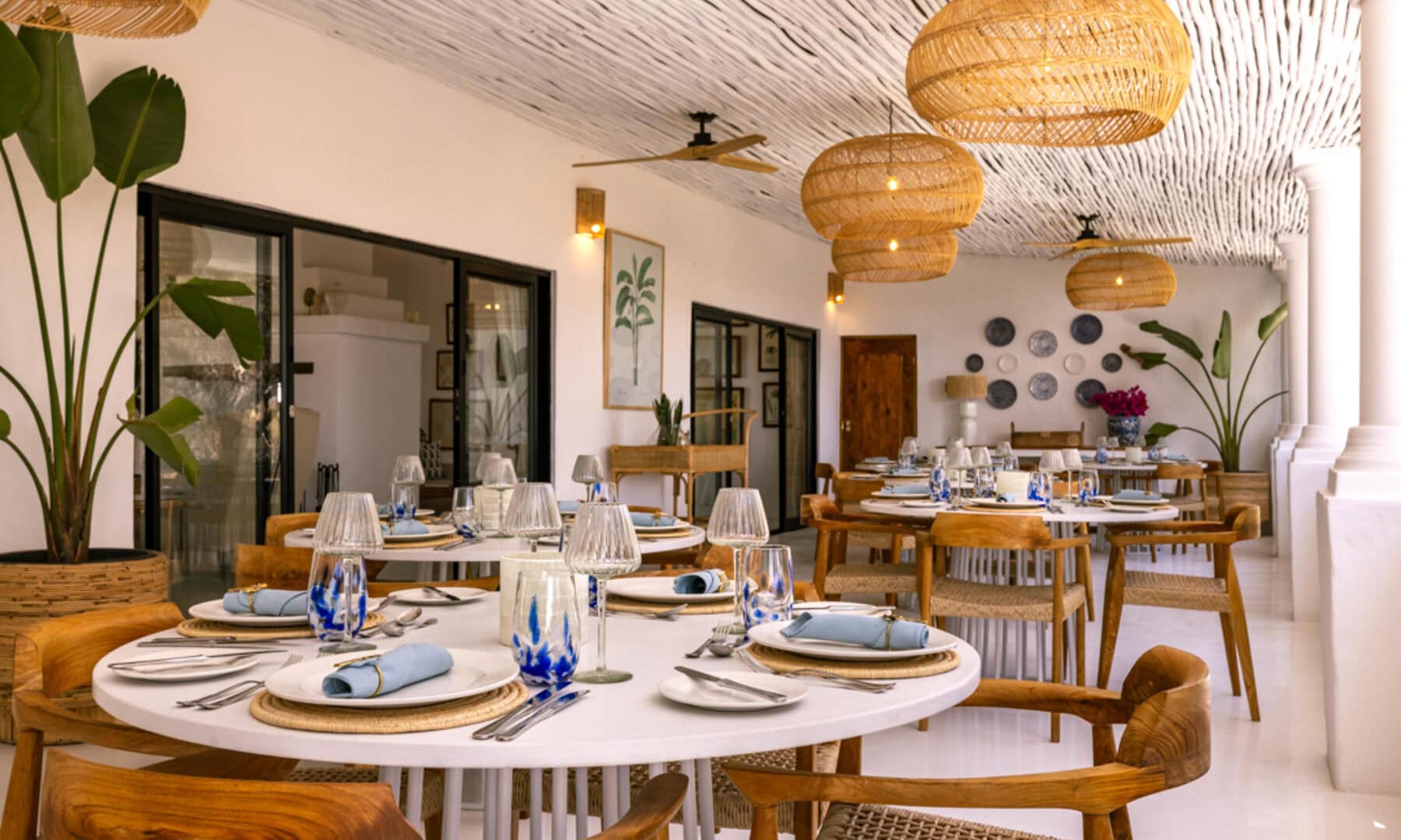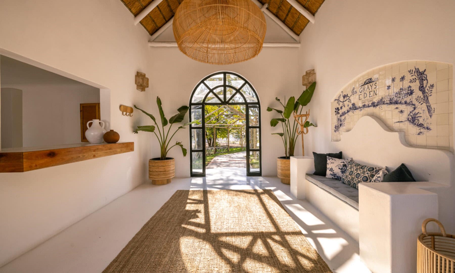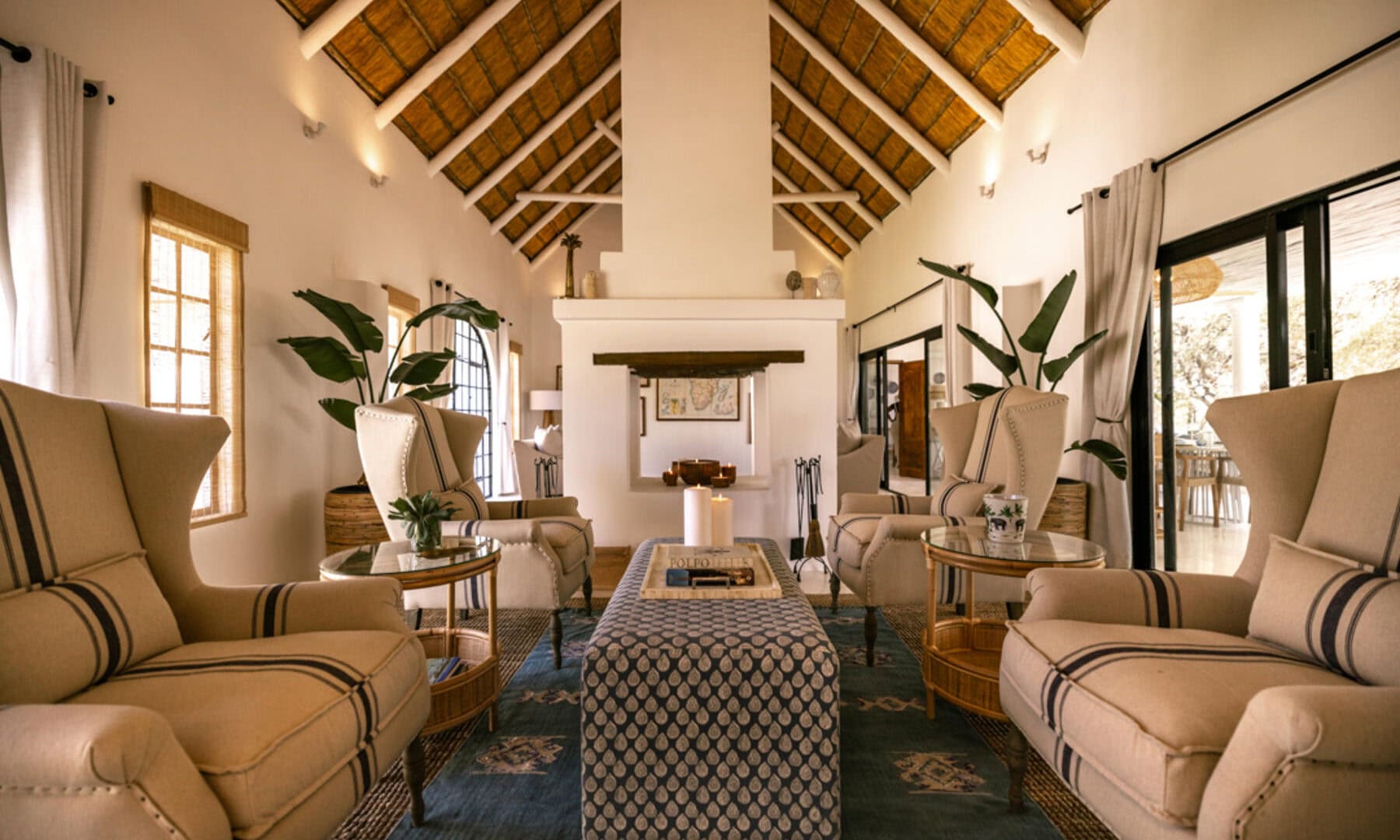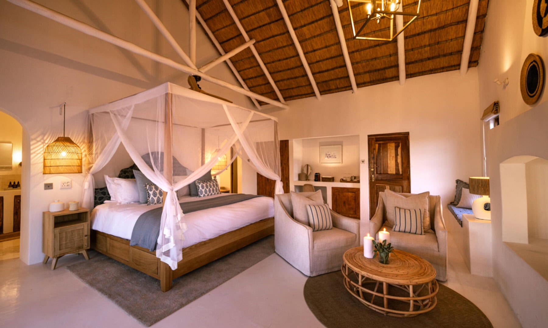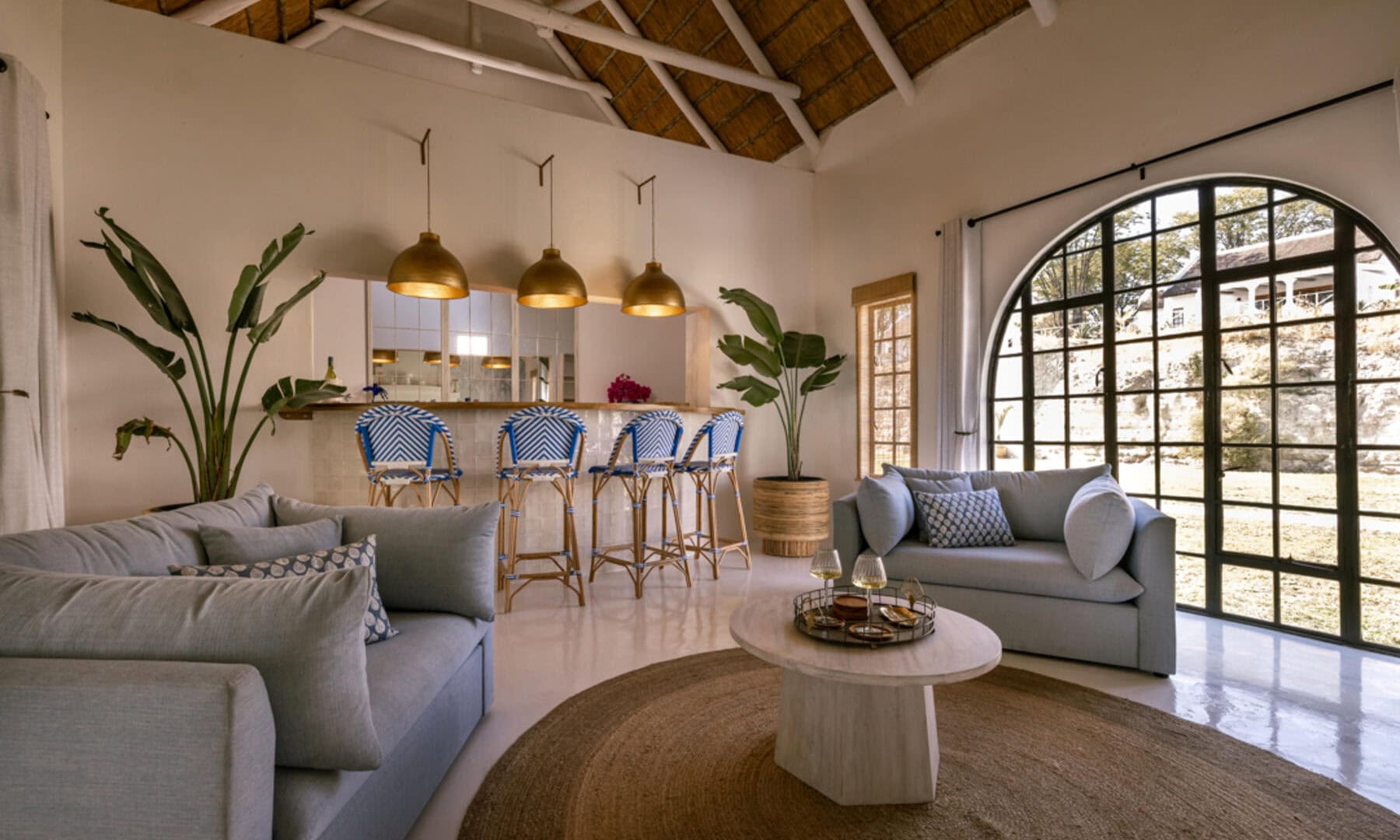 Featuring thatched, high ceilings and tall archways, the hotel welcomes light and infuses a sense of tranquility and space. Modern, minimalist interiors with a light blue, white and natural brown palette are accentuated by large, generous verandahs overlooking grassy lawns with dappled shade from leadwood and raintrees.