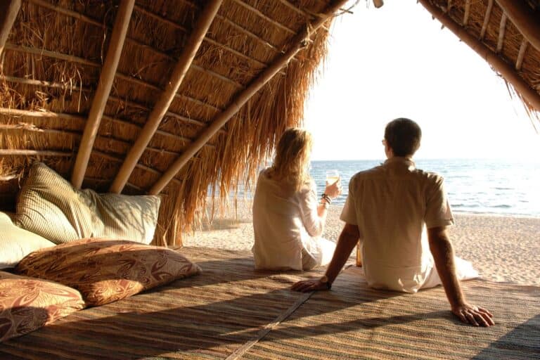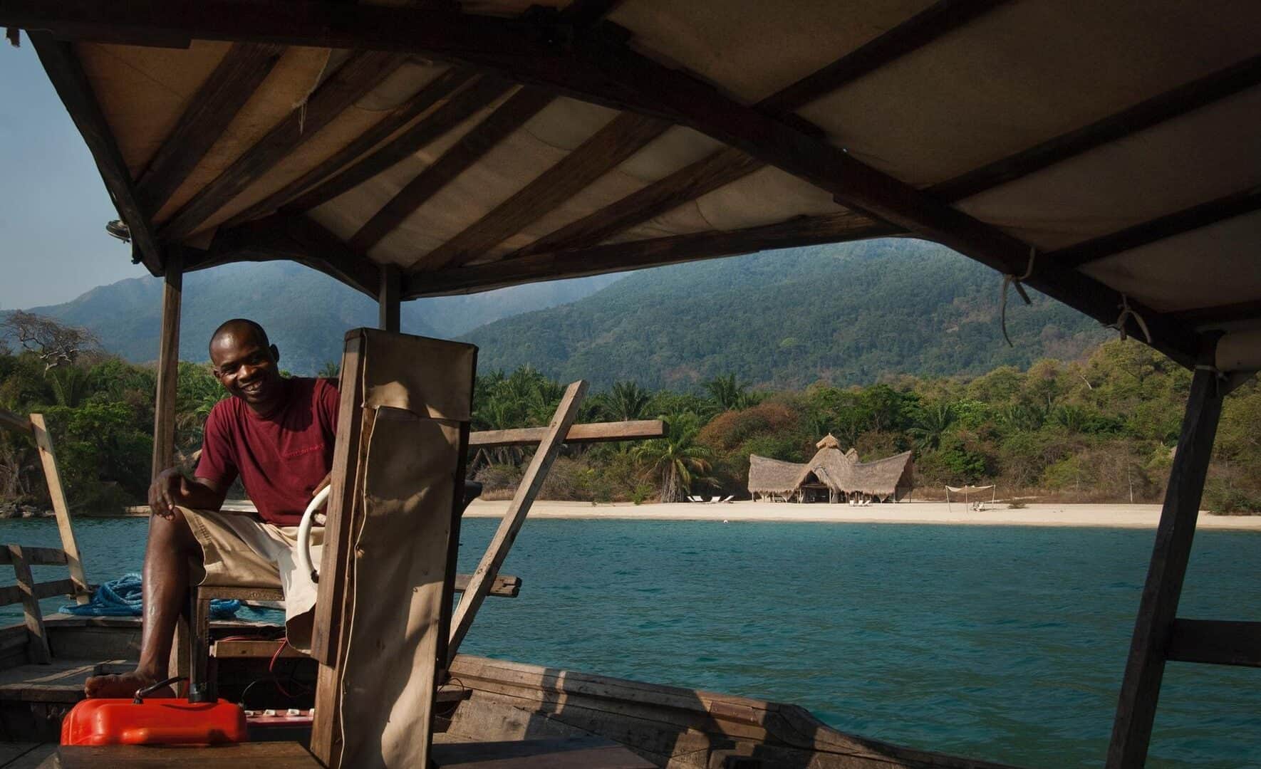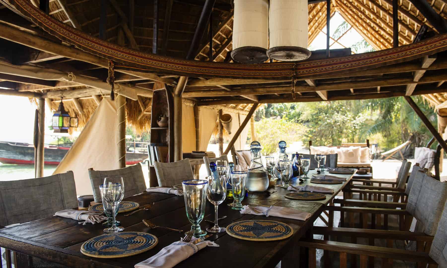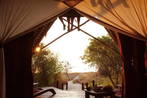 Evenings end with sundowners on the rocks of the headland, where drinks are served around the lamp-lit bar whilst the mountains, rising behind camp, disappear into the darkness.