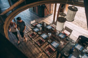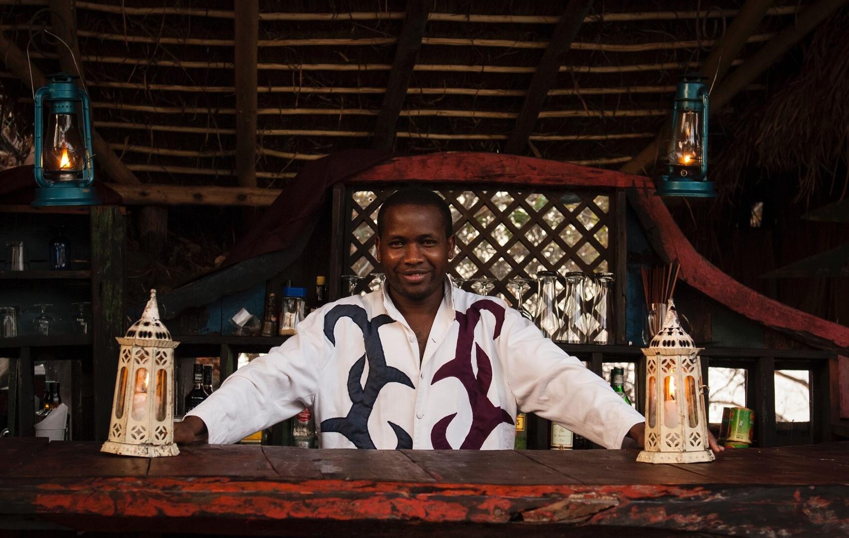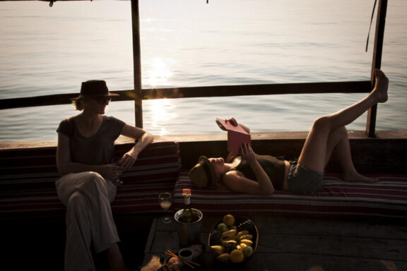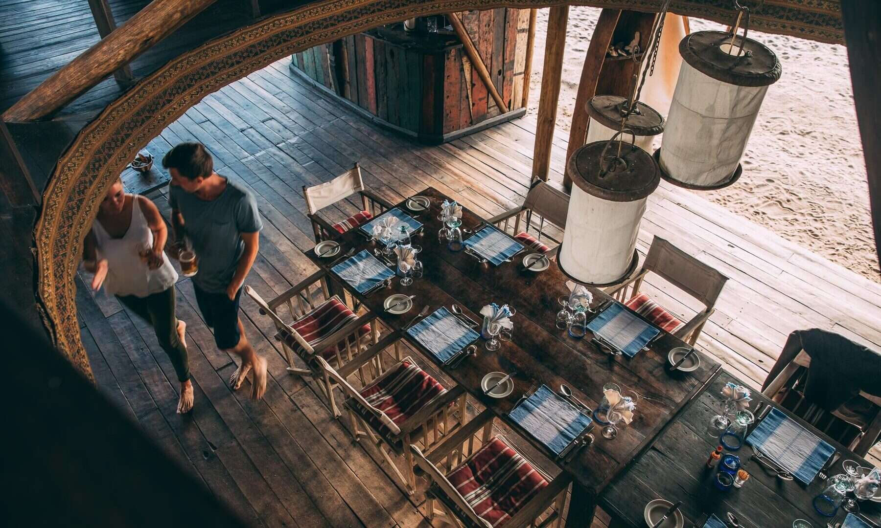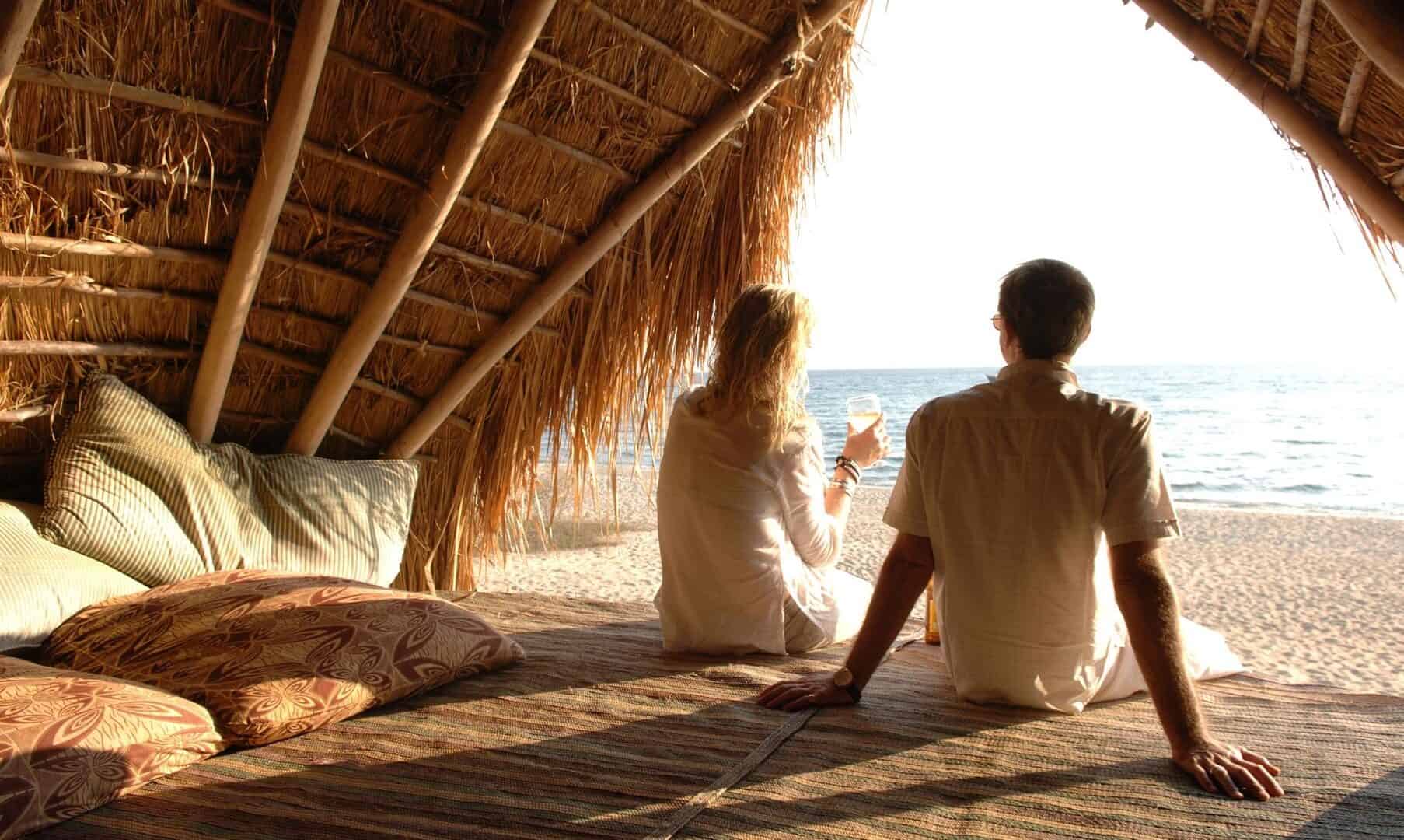 Evenings end with sundowners on the rocks of the headland, where drinks are served around the lamp-lit bar whilst the mountains, rising behind camp, disappear into the darkness.