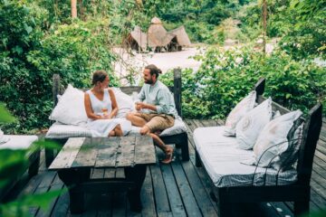 With just six wood and thatch bandas set on the edge of the forest line at the base of the mountains your days can start there, eating breakfast whilst waiting to hear news of the chimps and deciding what to do with your day.