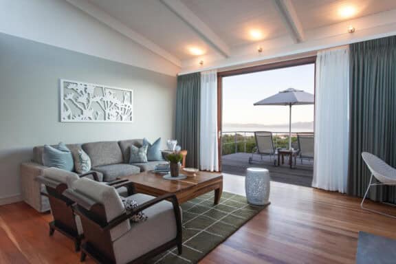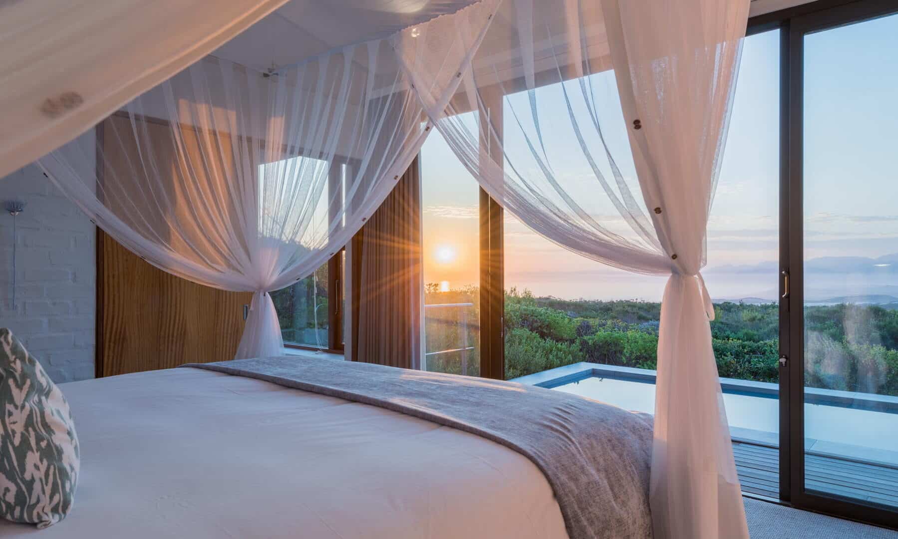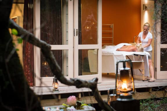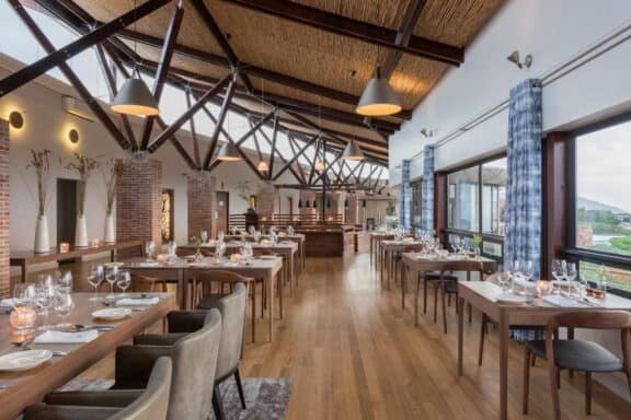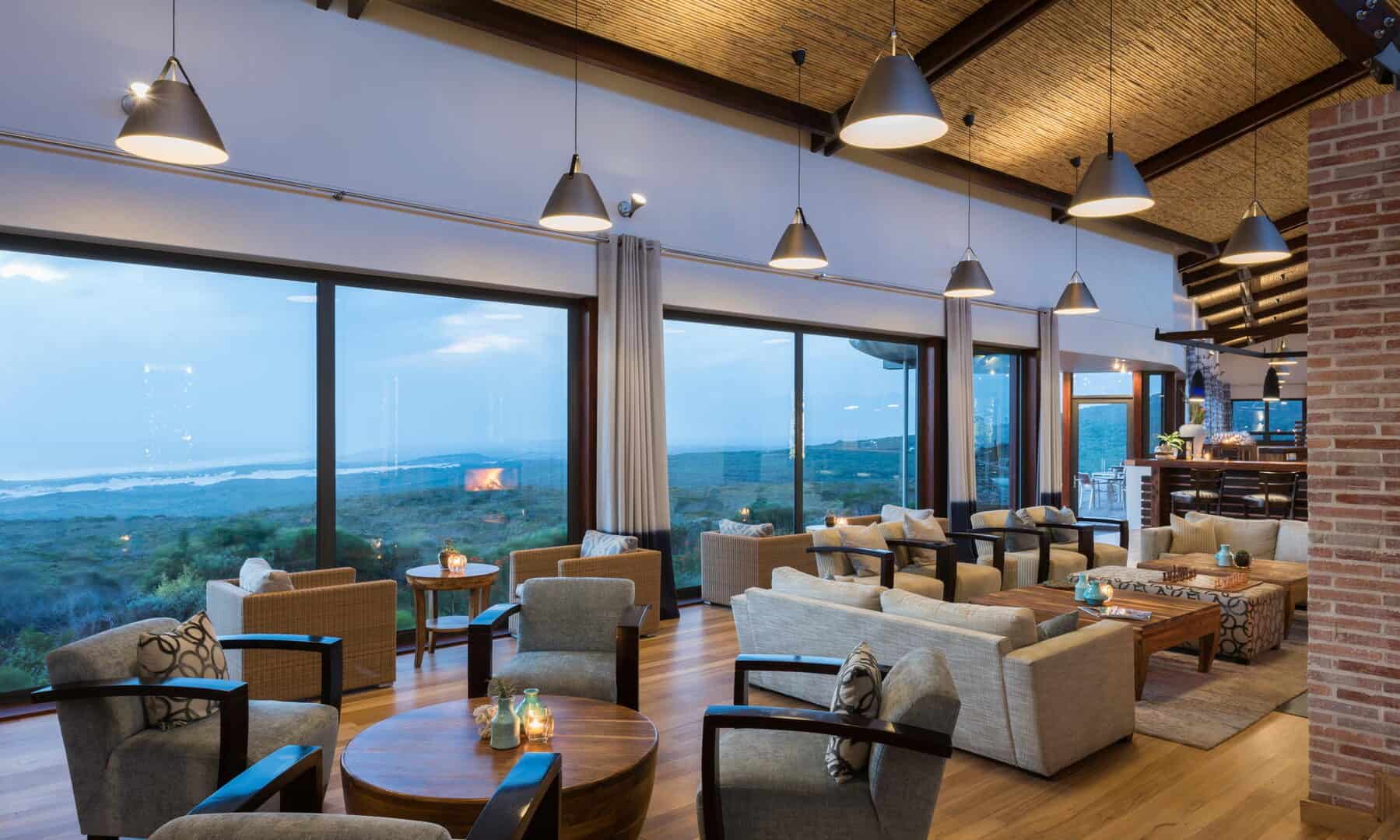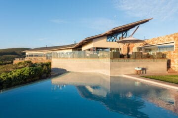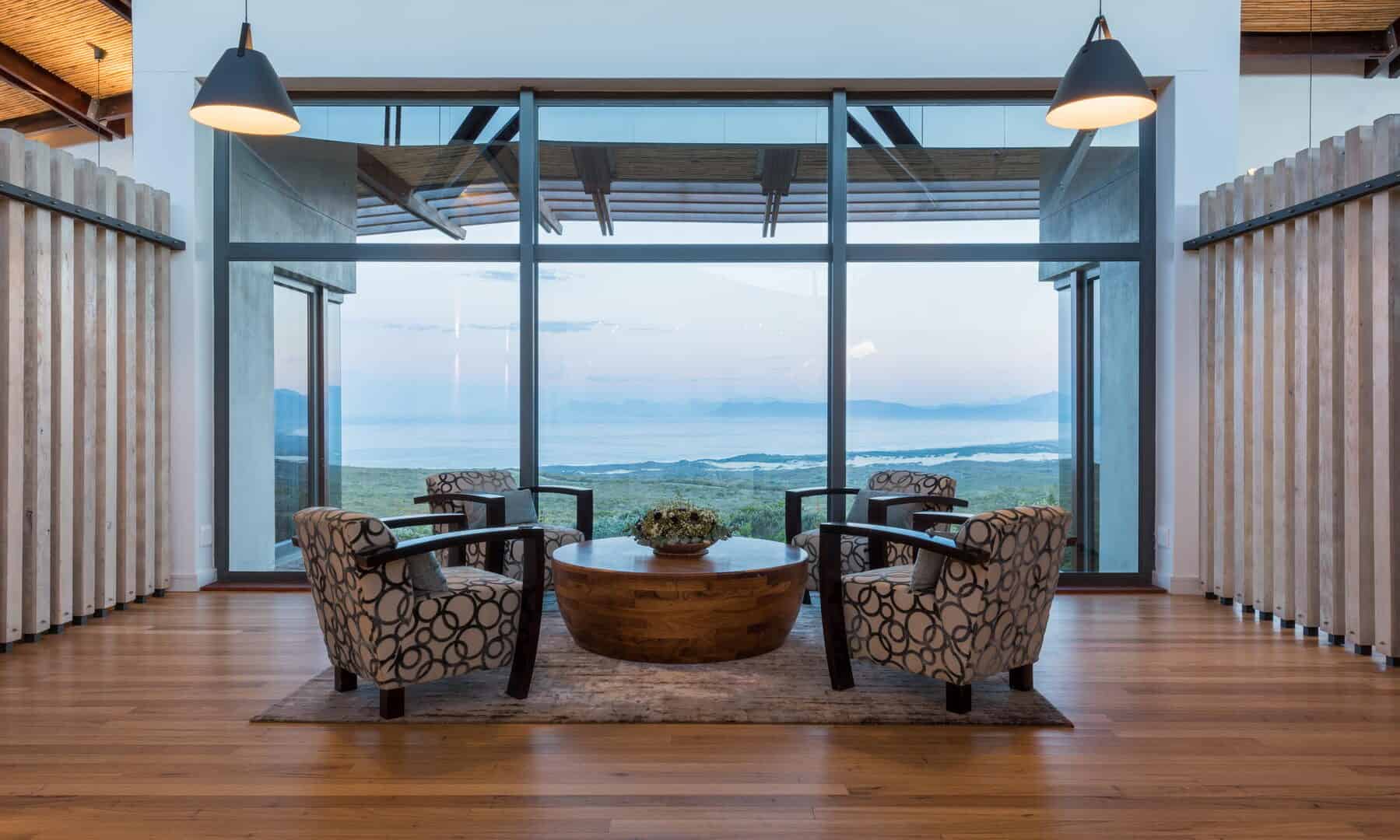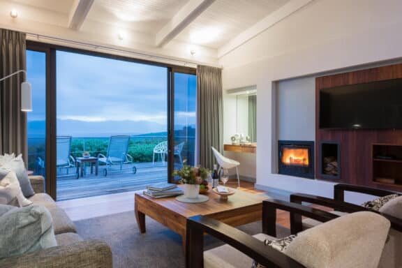 Nestled in an ancient Milkwood forest in the peaceful Grootbos Private Nature Reserve, surrounded by rolling hills of fynbos and majestic mountains, The Forest Lodge features 16 freestanding luxury suites beneath an ancient forest canopy. Each of the suites is stylishly furnished with canopy beds, spacious en-suite bathrooms, separate lounges with cosy fireplaces and private wooden decks with spectacular panoramic views. The lodge features a variety of elegant dining venues, a bar, lounge, curio shop and conference centre. Spacious wooden decks and an infinity pool beckon you to relax and unwind. As the evening descends, cosy fireplaces and subtle lighting create a warm, romantic atmosphere for the perfect dining experience.