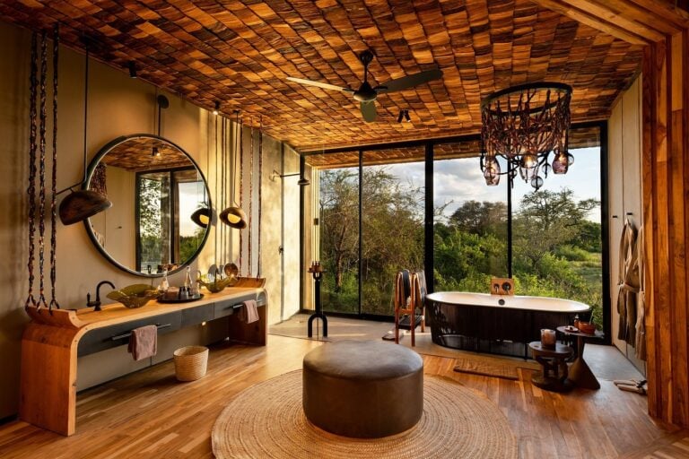 It features a private plunge pool, a large bed, a bathroom, an indoor shower (with a fantastic view), and ten nostalgically gorgeous and spacious guest Suites that seem to float across the landscape and lightly touch the ground.