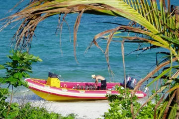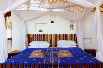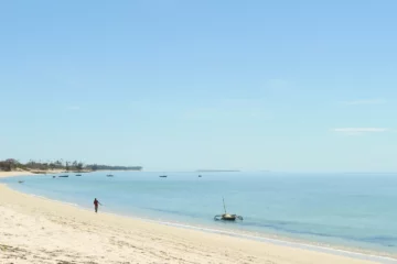 A delight to experience, a masterclass in how to build an exquisite design that didn’t cost the earth, and a showcase for local artists: high roofs, sea breezes, beach vistas, and outdoor en suite bathrooms with stunning “loos with a view” A restaurant, bar, dive shop and nine beachside ‘bandas’ all gazed out over Guludo’s magnificent bay.