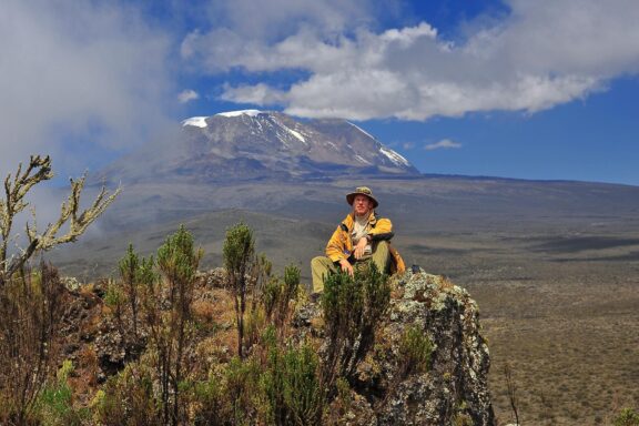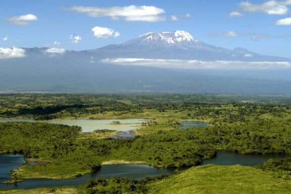 Bordering the northern edge of the national park, Hatari Lodge can be found nestled in an acacia forest, flanked by two jutting peaks: Mount Kilimanjaro and Mount Meru, a 14,980ft dormant volcano.