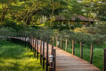 Hatari Lodge is situated at the foot of the snow-topped Mount Meru, Arusha National Park is home to untamed landscapes strewn with wildlife.