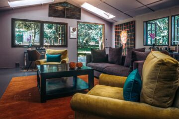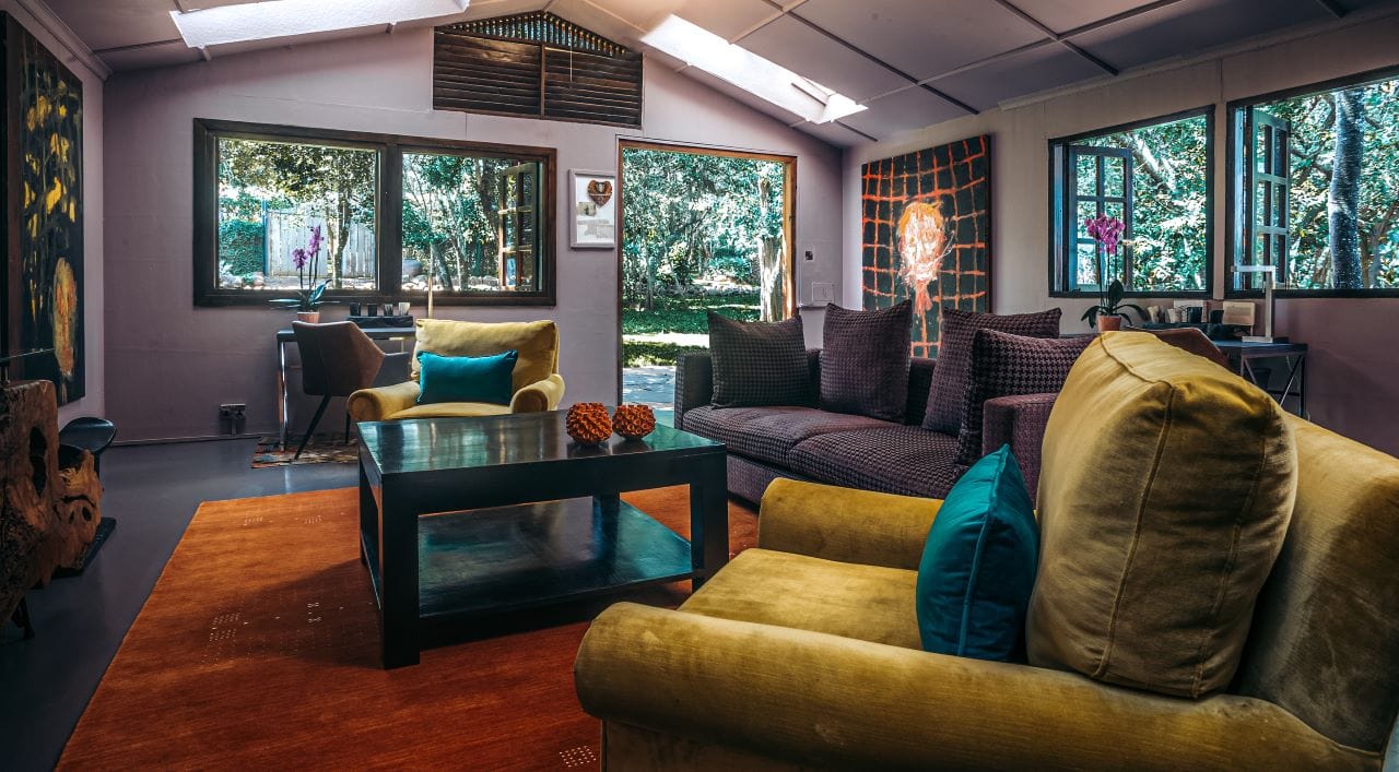 Set on Leafy Grounds, Hemingways Eden Residence is comprised of Nine Rooms in total: Three in the Main House and Five in the Studio Annex, and the cottage. The main house is equipped with a beautiful open-plan dining area, bar, living room with fireplace and veranda as well as a divinity room.