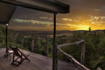 The main lodge and luxury tented chalets are elevated on expansive wooden decks that command panoramic views of the open plains. Discreetly positioned to ensure privacy and tranquility, all are complete with an en-suite bathroom and romantic outside bush shower.