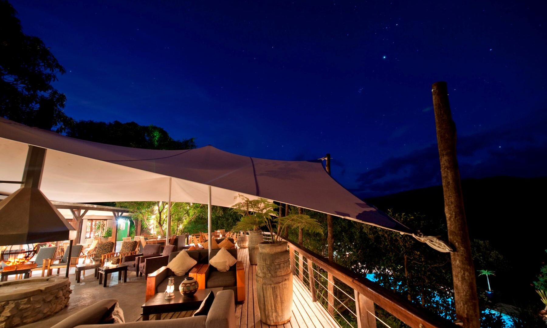 Set on the edge of an indigenous forest, with breathtaking views of the valleys and Tsitsikamma Mountains. Enjoy outstanding cuisine, stylish accommodation, panoramic views and friendly hospitality. Sixteen unique African-styled suites situated in the lush gardens around the main house offer private wooden decks, hammocks, and king-size beds & most have cozy fireplaces.