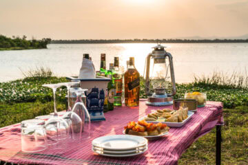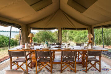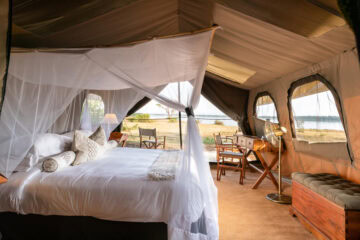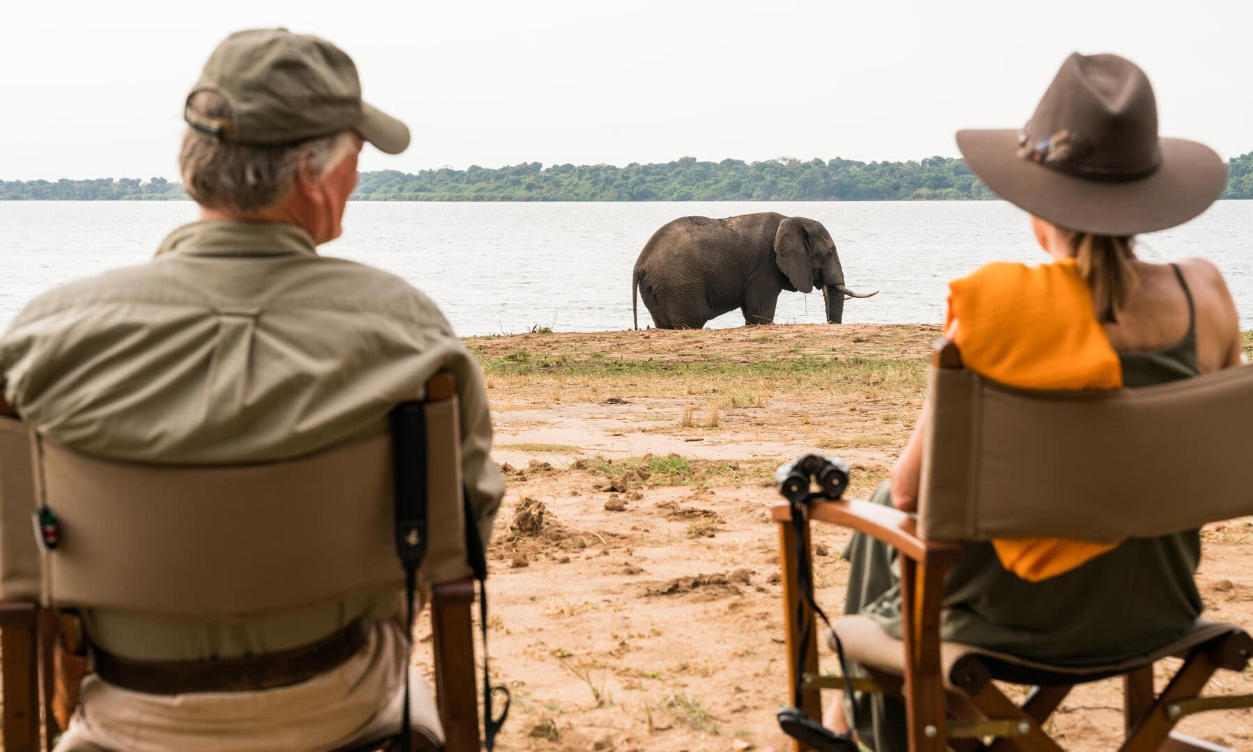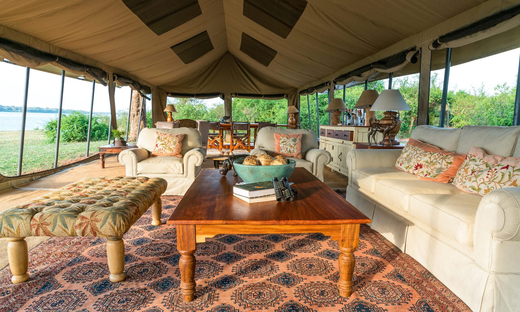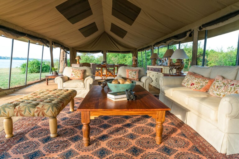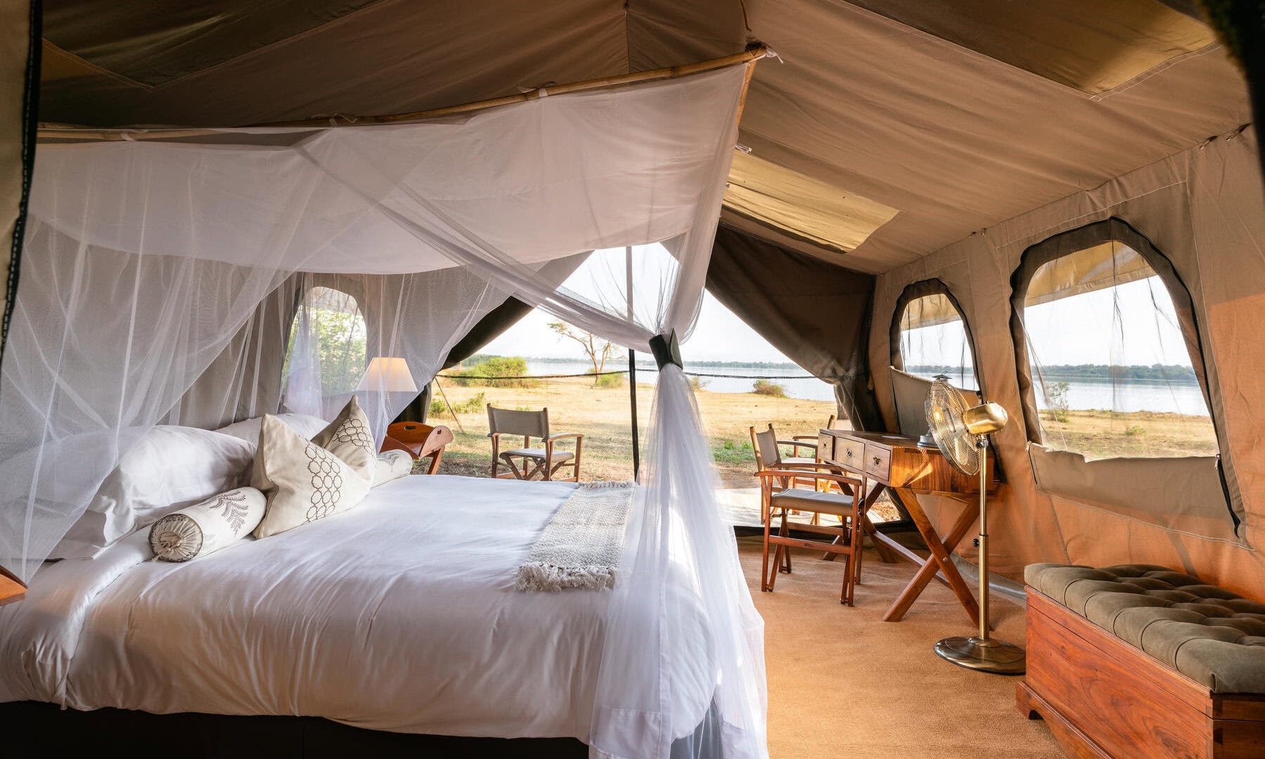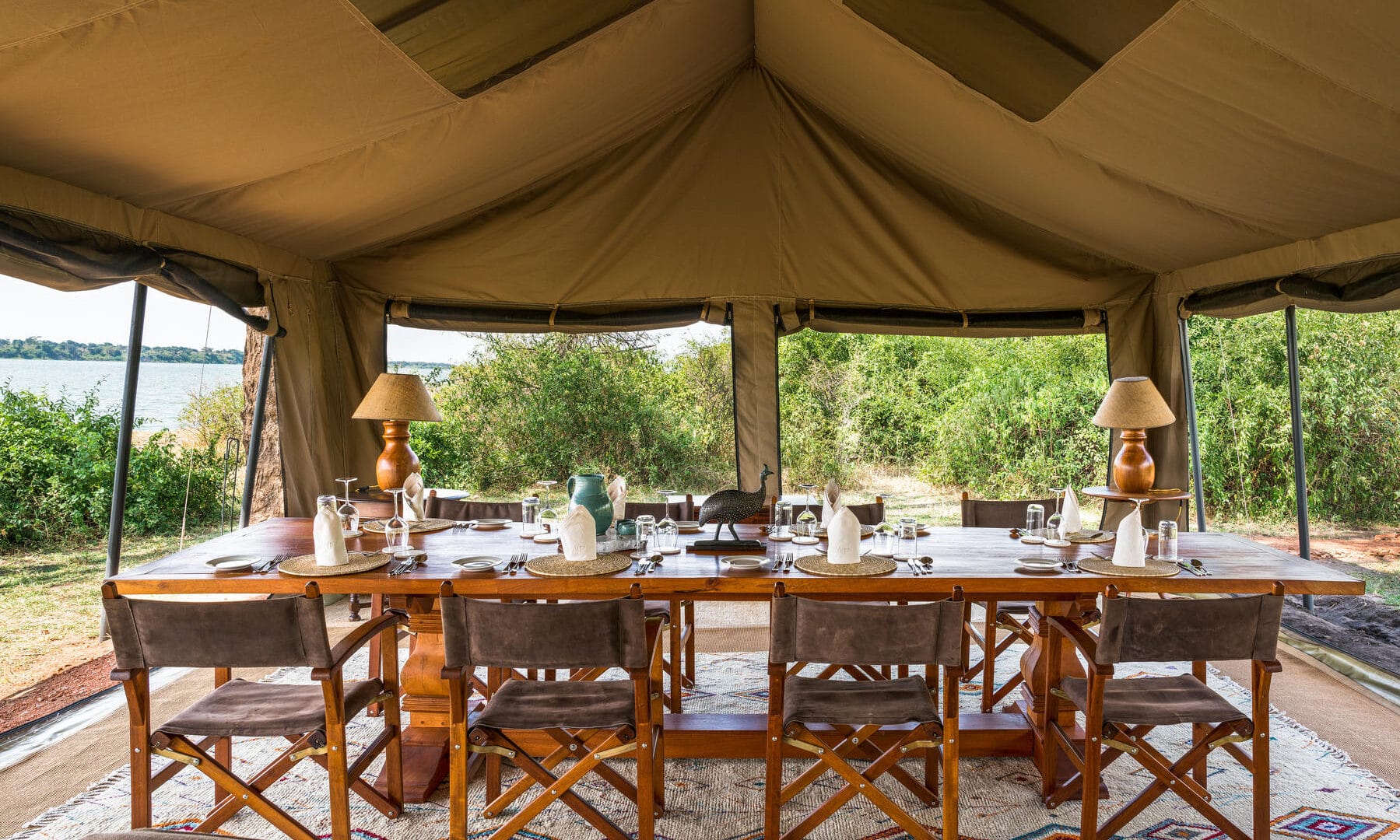 Each tent is set up with views of the Kazinga Channel and the Rwenzori Mountains in the distance. You will fall asleep to hippos honking and wake up to herds of elephant coming down to water, right in front of your room.
