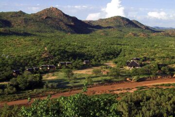 Huab Lodge lies in an 8,000 hectare nature reserve of pristine wilderness on the Huab River in Damaraland, Namibia. Breathtaking mountainous scenery in granties of 1.8 billion years, naturally occurring wild creatures and perfect peace and balmy weather combine to make this a place to recover from the stresses of your day-to-day lives and for total relaxation.