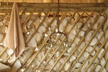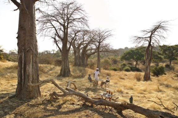 You can then curl up with a cup of coffee or tea on your private elevated wood deck that surrounds the entire banda or in the relaxing sitting area, both of which provide breathtaking views of the Ruaha’s wilderness reserve.